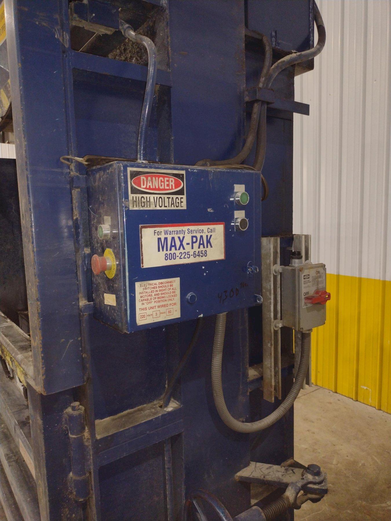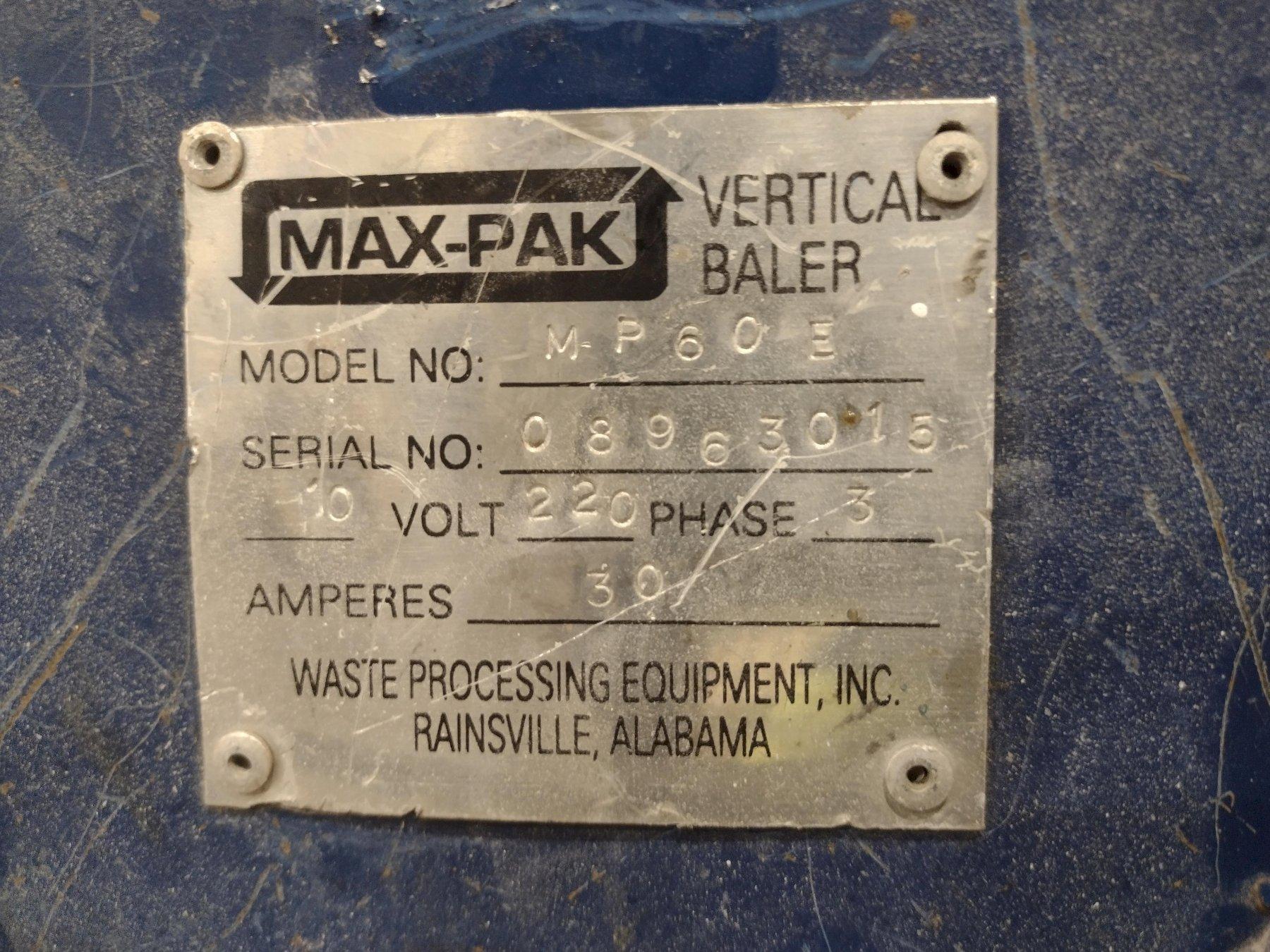 60" X 48" X 30" MAX-PAK MODEL #MP-60-E VERTICAL HYDRAULIC CARDBOARD BALER: STOCK #23656
