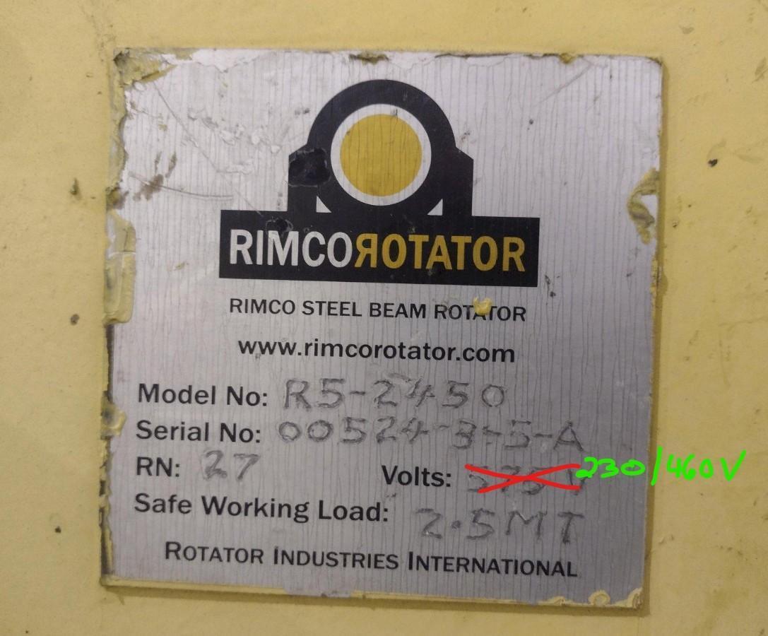 11,600 LBS RIMCO MODEL #R5-2450 ROTATOR POWERED I-BEAM ROLLOVER / ROTATOR MACHINE: STOCK #23597