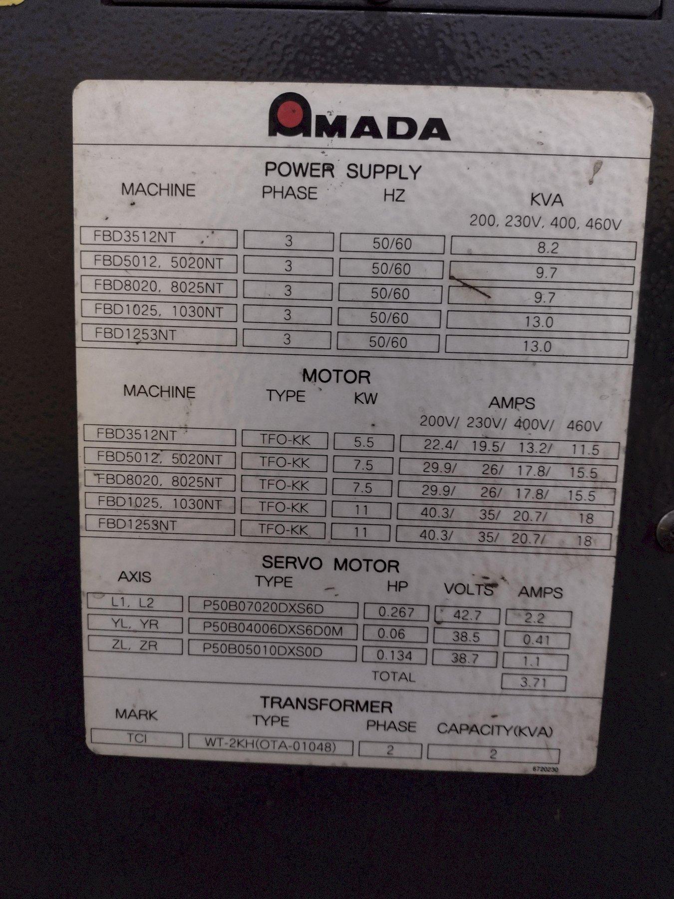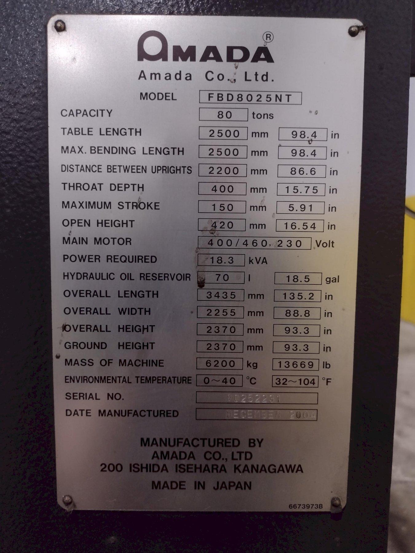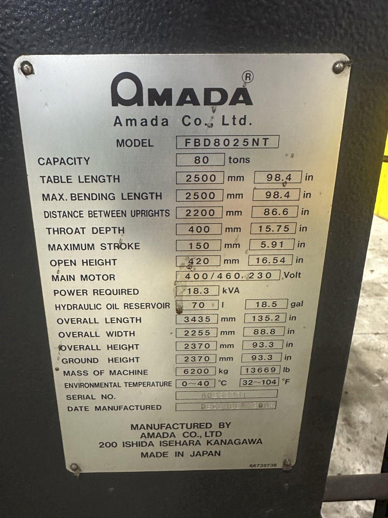 80 TON X 8' AMADA MODEL #FBD-8025 NT CNC HYDRAULIC PRESS BRAKE NEW 2004 : STOCK #23473