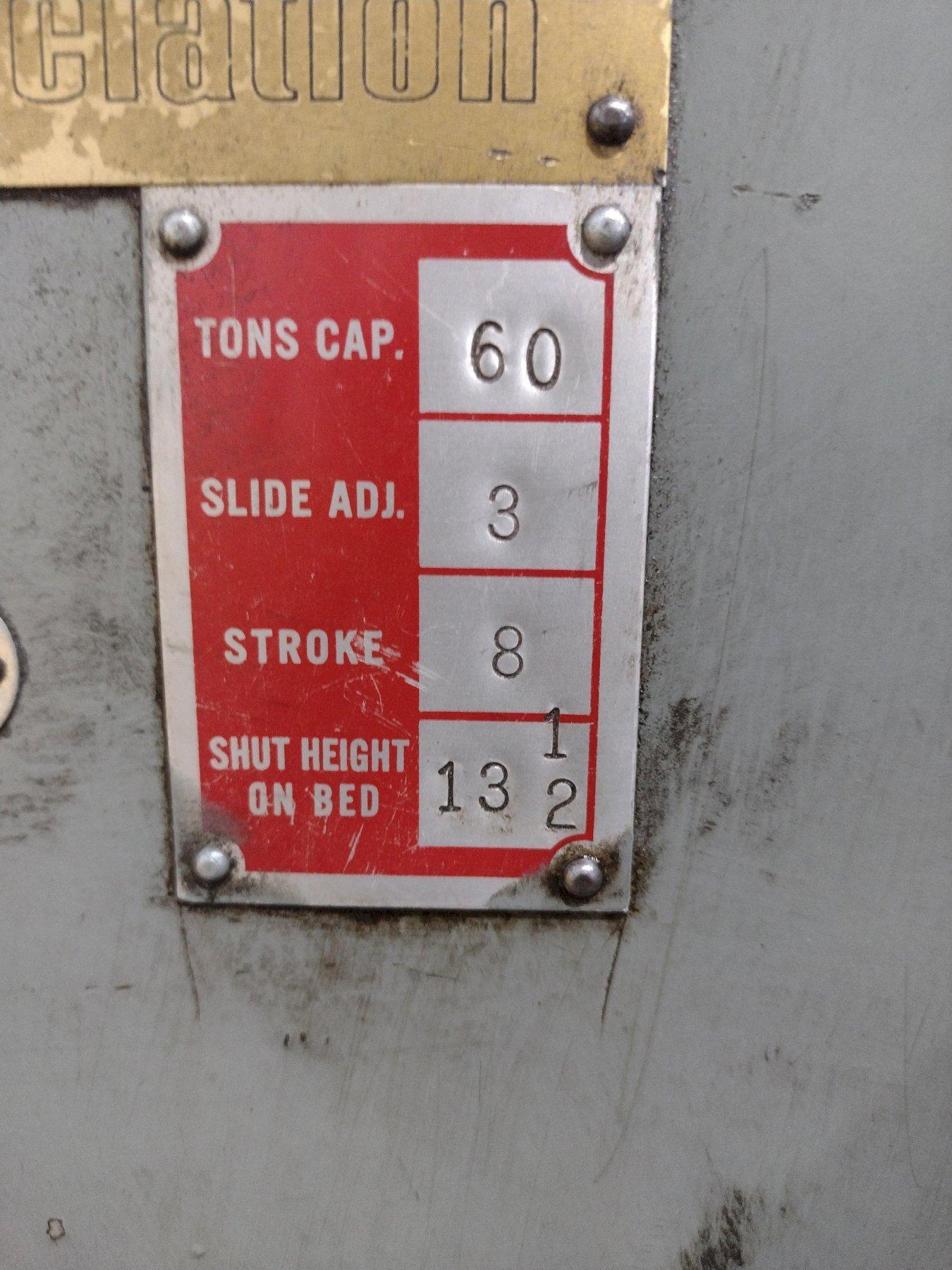 60 TON BLISS MODEL #C-60 OBI STAMPING PUNCH PRESS 8" STROKE: STOCK #23462