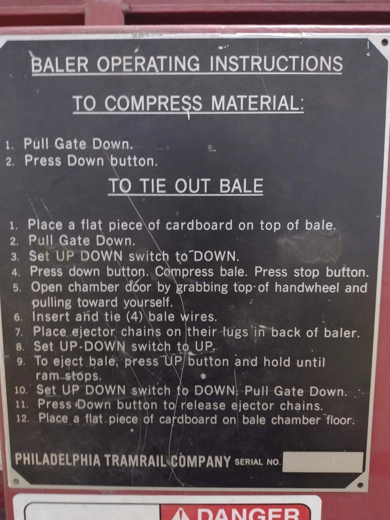 30" x 60" PTR PHILADEPHIA TRAMRAIL MODEL #2300HD VERTICAL HYRAULIC CARDBOARD BALER COMPACTOR: ST