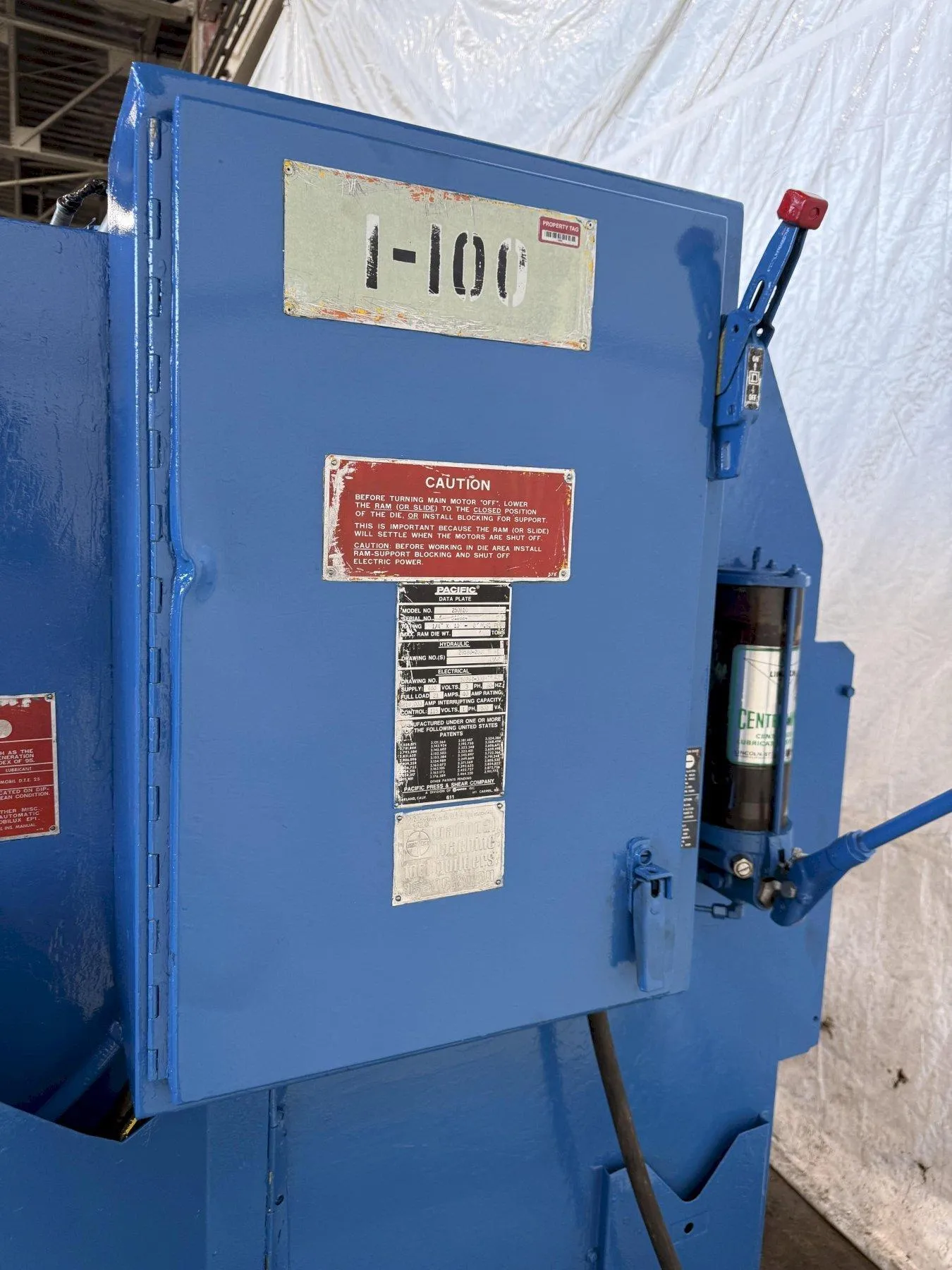 10’ X ¼” PACIFIC MODEL #250B10 HYDRAULIC SHEAR: STOCK #23403