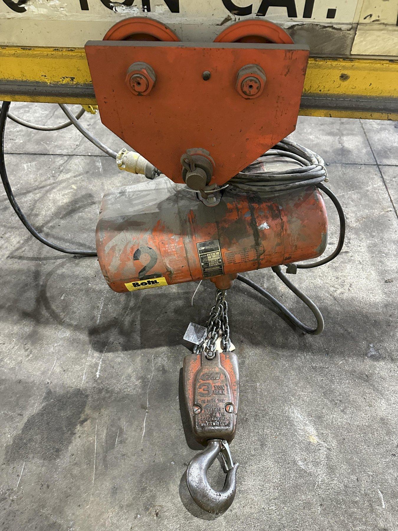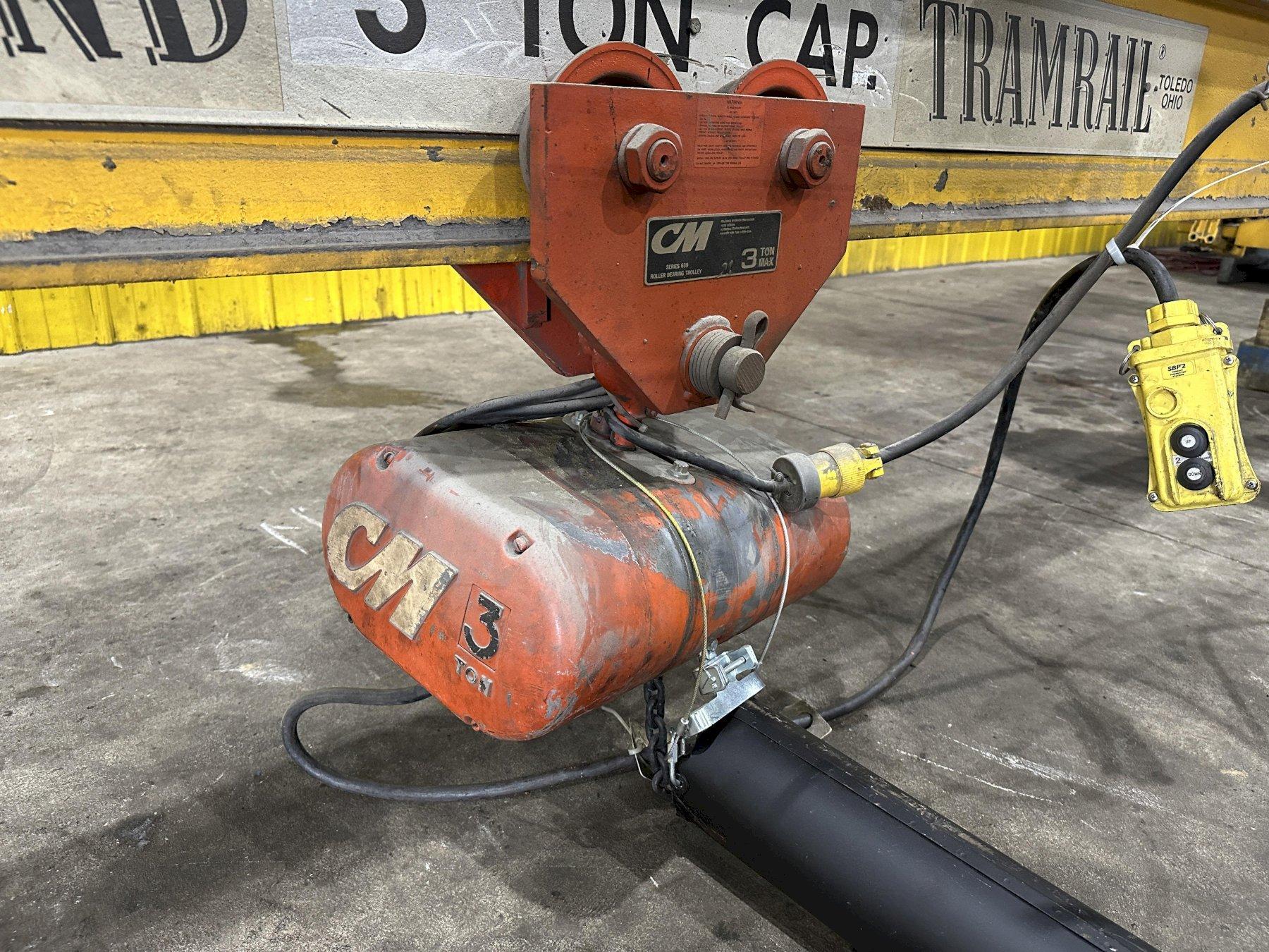 3 TON X 20' CLEVELAND TRAMRAIL UNDERSLUNG BRIDGE & 3-TON CM LODESTAR HOIST: STOCK #23054