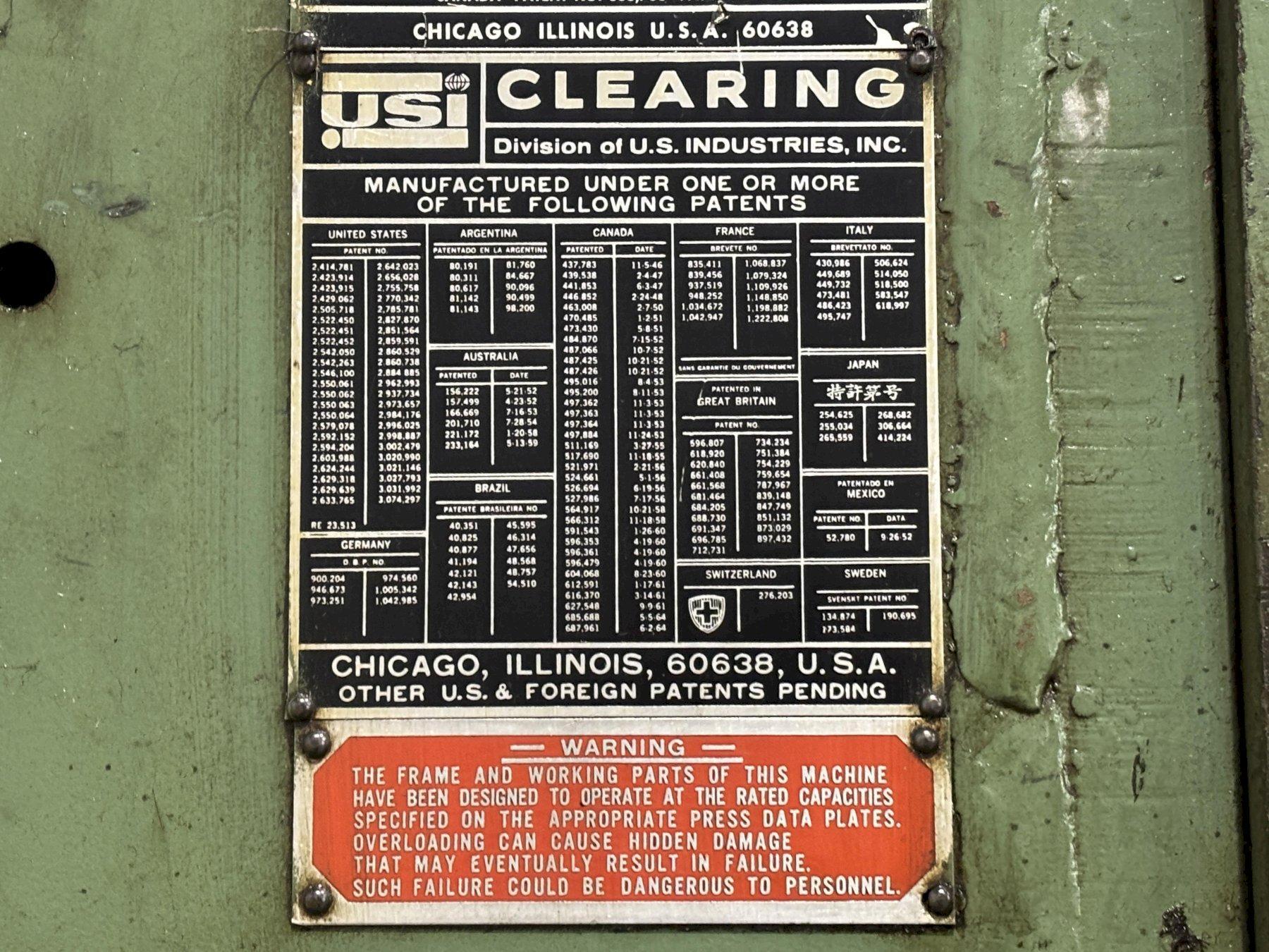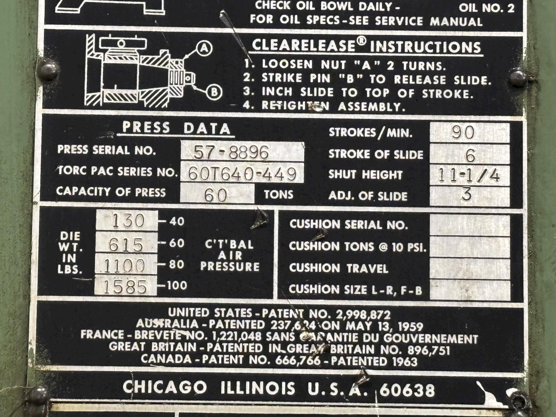 60 TON TORC-PAC USI CLEARING OBI PRESS 6" STROKE: STOCK #22824