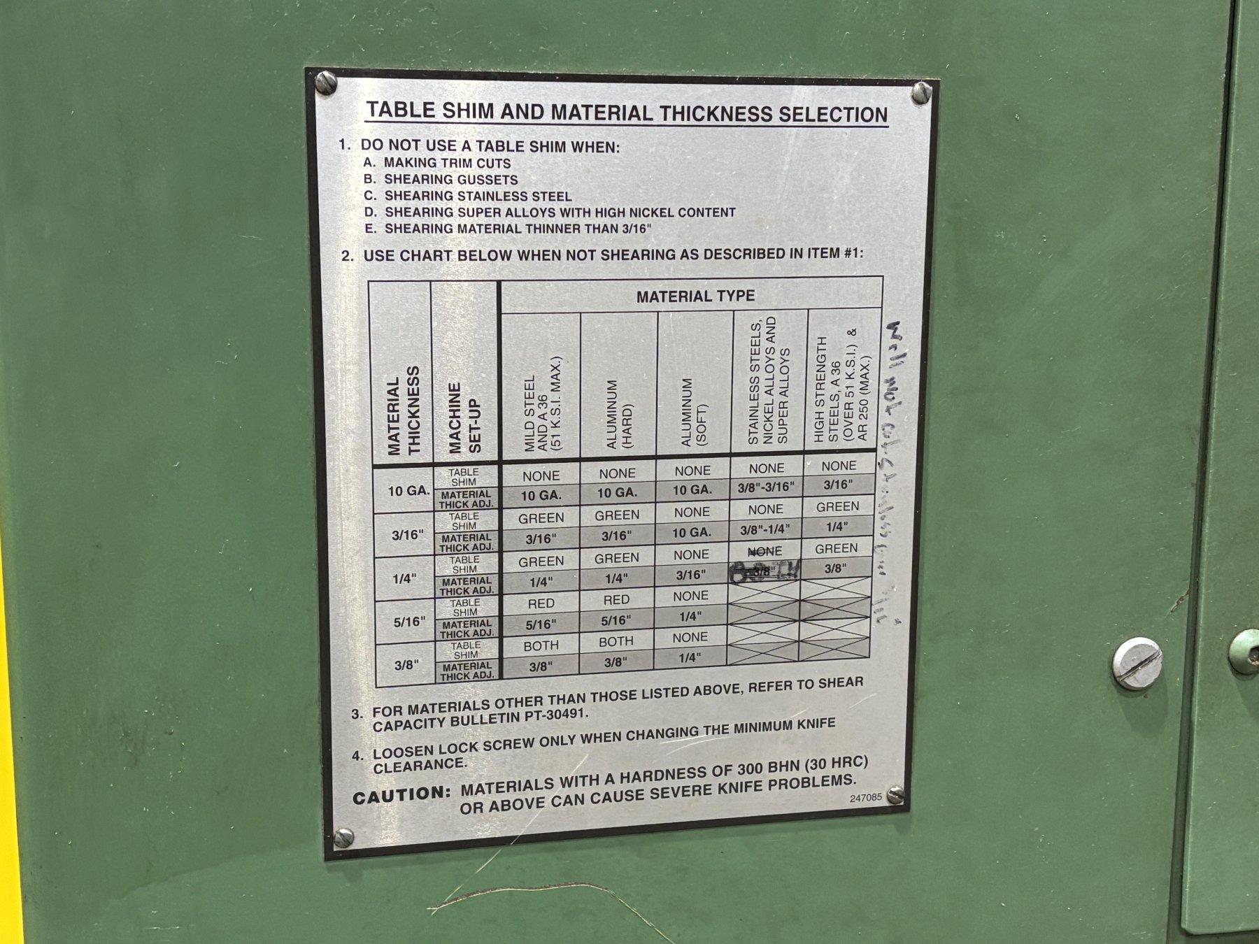 Maximum Shearing Length ................ 122 - 3/4”