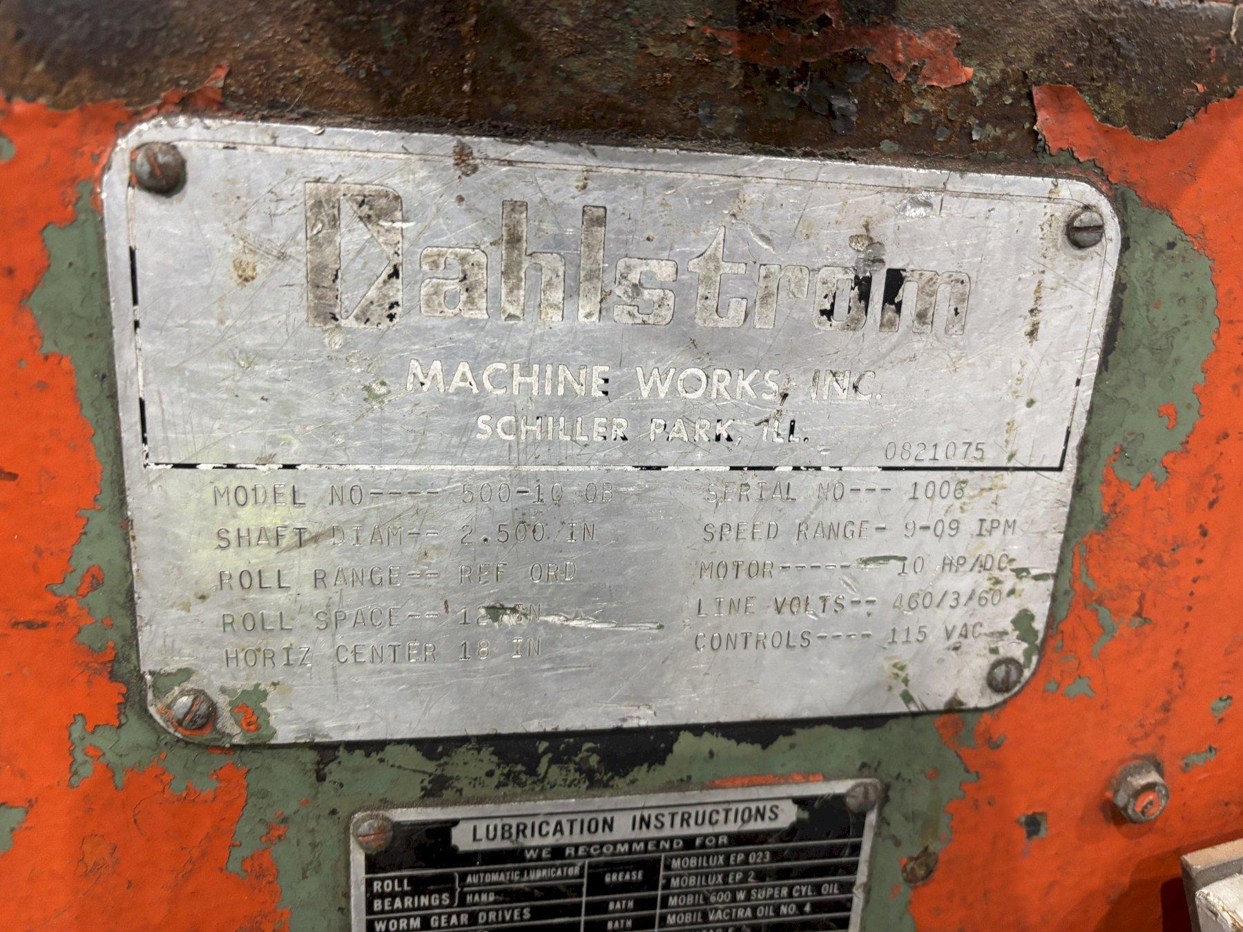 8 STAND X 2.5" X 12" ROLLSPACE DAHLSTROM MODEL 500-10-OB ROLLFORMER: STOCK #22626