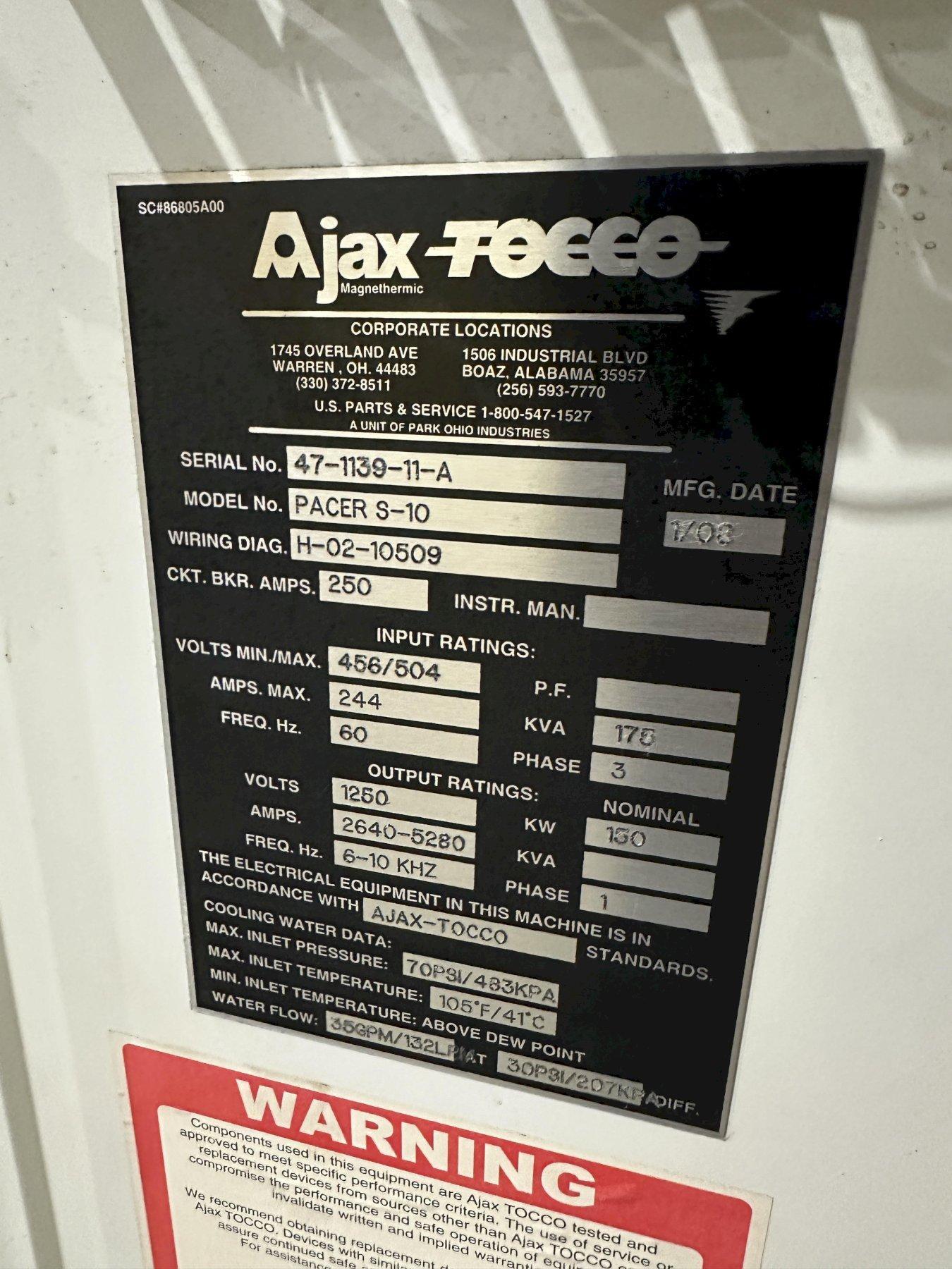 150 KW AJAX-TOCCO MODEL PACER-S10 HEAT INDUCTION POWER SOURCE, 6-10 KHZ, NEW 2008: STOCK #22586