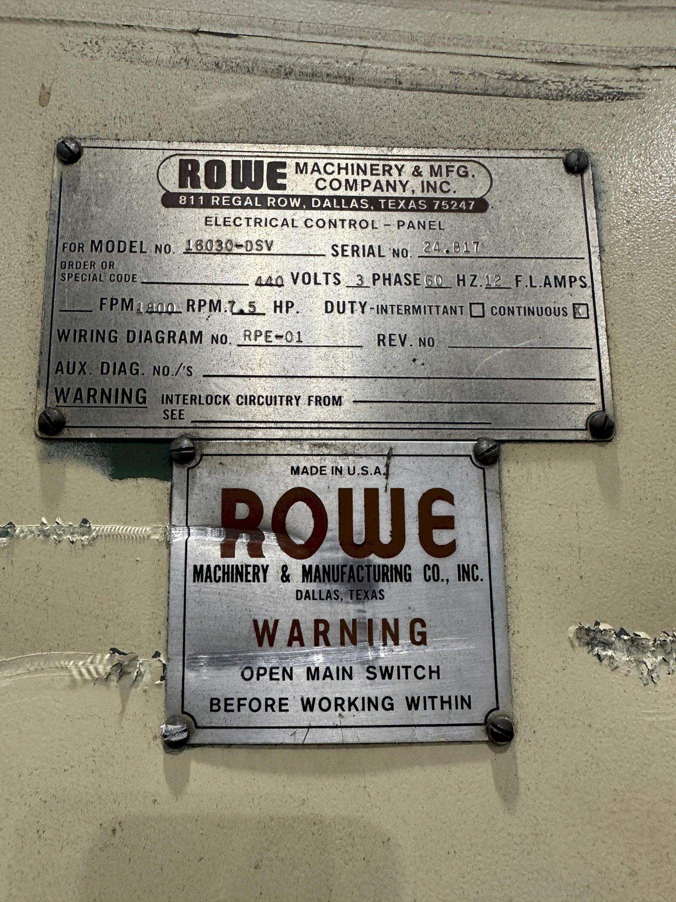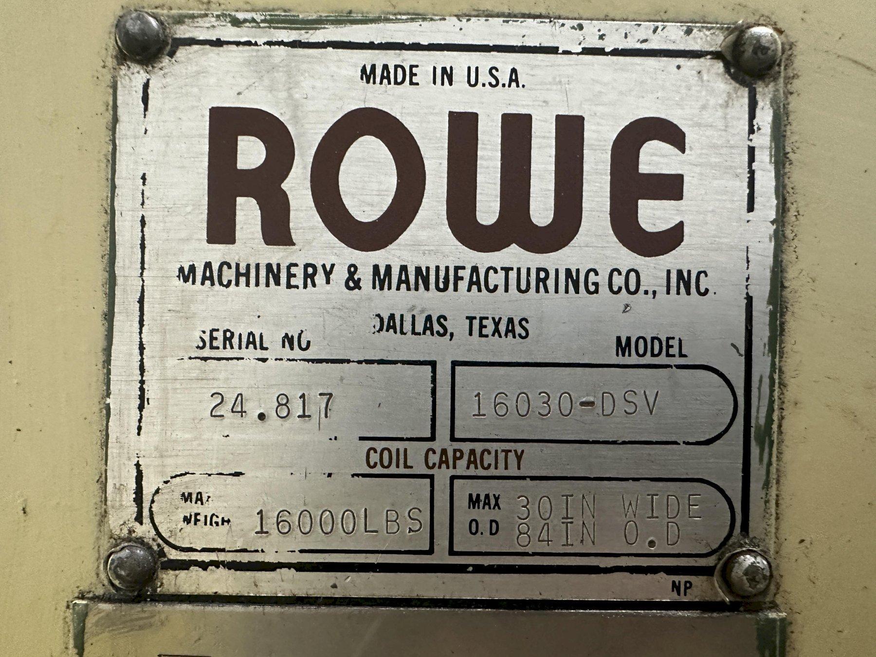 16,000 LBS X 30" X 84" OD ROWE MODEL #16030-DSV MOTORIZED COIL REEL UNCOILER: STOCK #22333