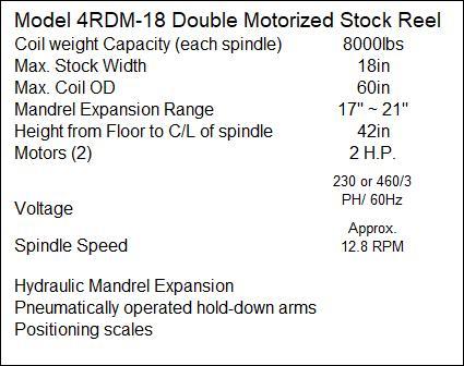 COIL WEIGHT CAPACITY ........ 8,000 LBS PER SIDE