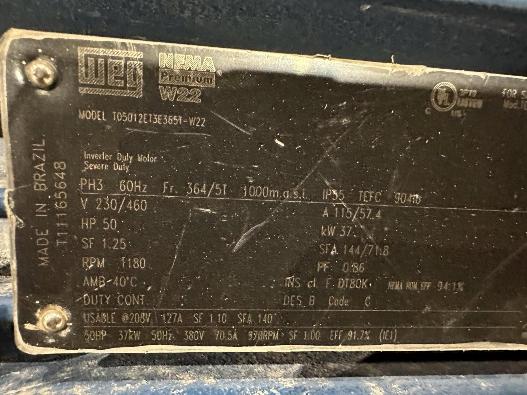 50 HP WEG TEFC MOTOR, 365/5T FRAME : STOCK #22166