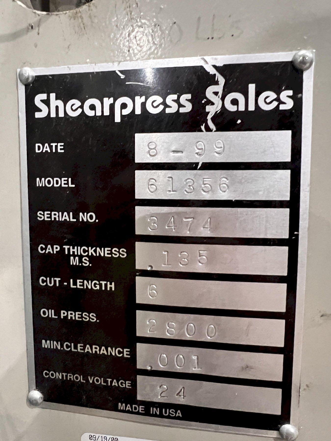 6' X .135" ACCURSHEAR MODEL #61356 HYDRAULIC POWER SQUARING SHEAR: STOCK #22035
