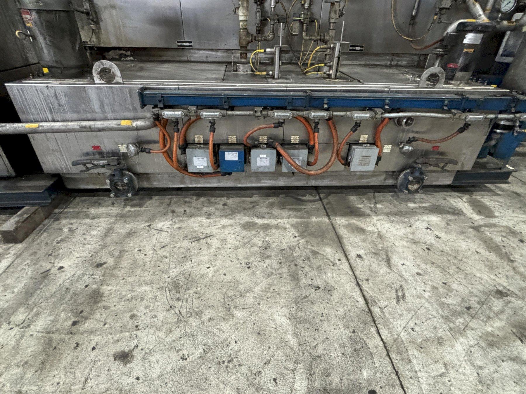 The wash tank has been supplemented with four (4) 40KW heat packages. The rinse tank has been supplemented with one (1) 40KW heat package. Each package consists of heater elements and thermocouples. A selector switch on the operator's station used to turn the heat on and off. Review the Watlow Series 93 manual in the Vendor Literature section in the back of this manual for temperature controller operation.