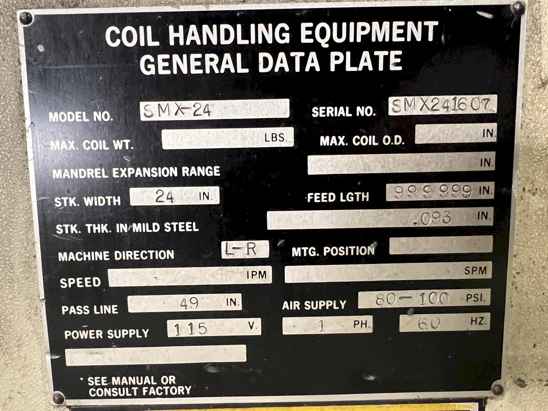 24" X .093" CWP MODEL #SMX-24 SERVO FEEDER & SERVOMAX II CONTROL: STOCK #21950