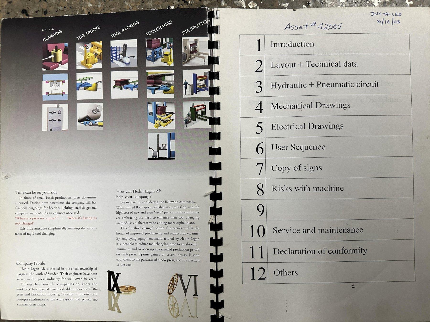 10,000 LB x 78" x 51" HEDIN POWERED DIE SET SPLITTER SEPERATOR: STOCK #21945