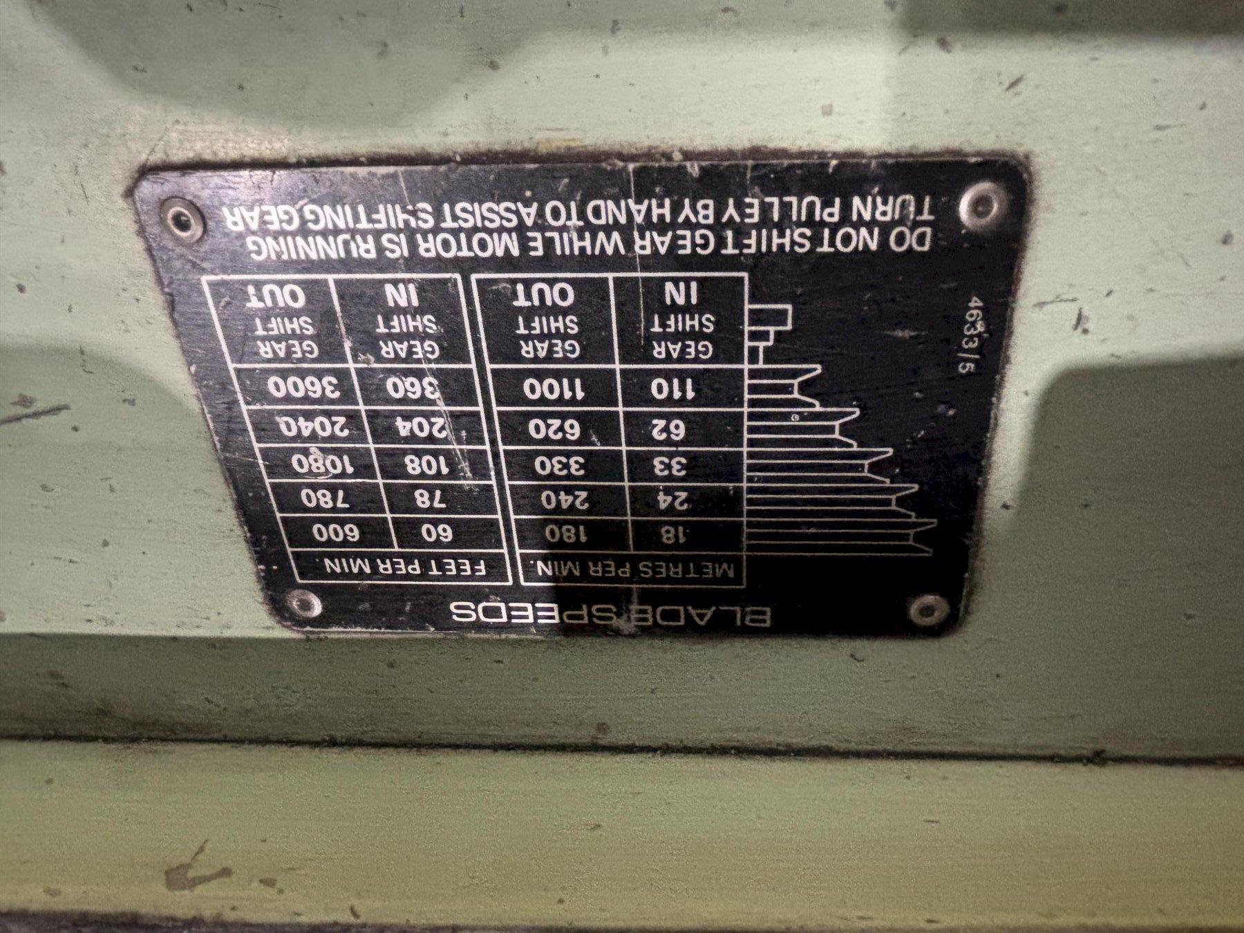 BLADE SPEEDS ........................ 60 – 3600 FPM