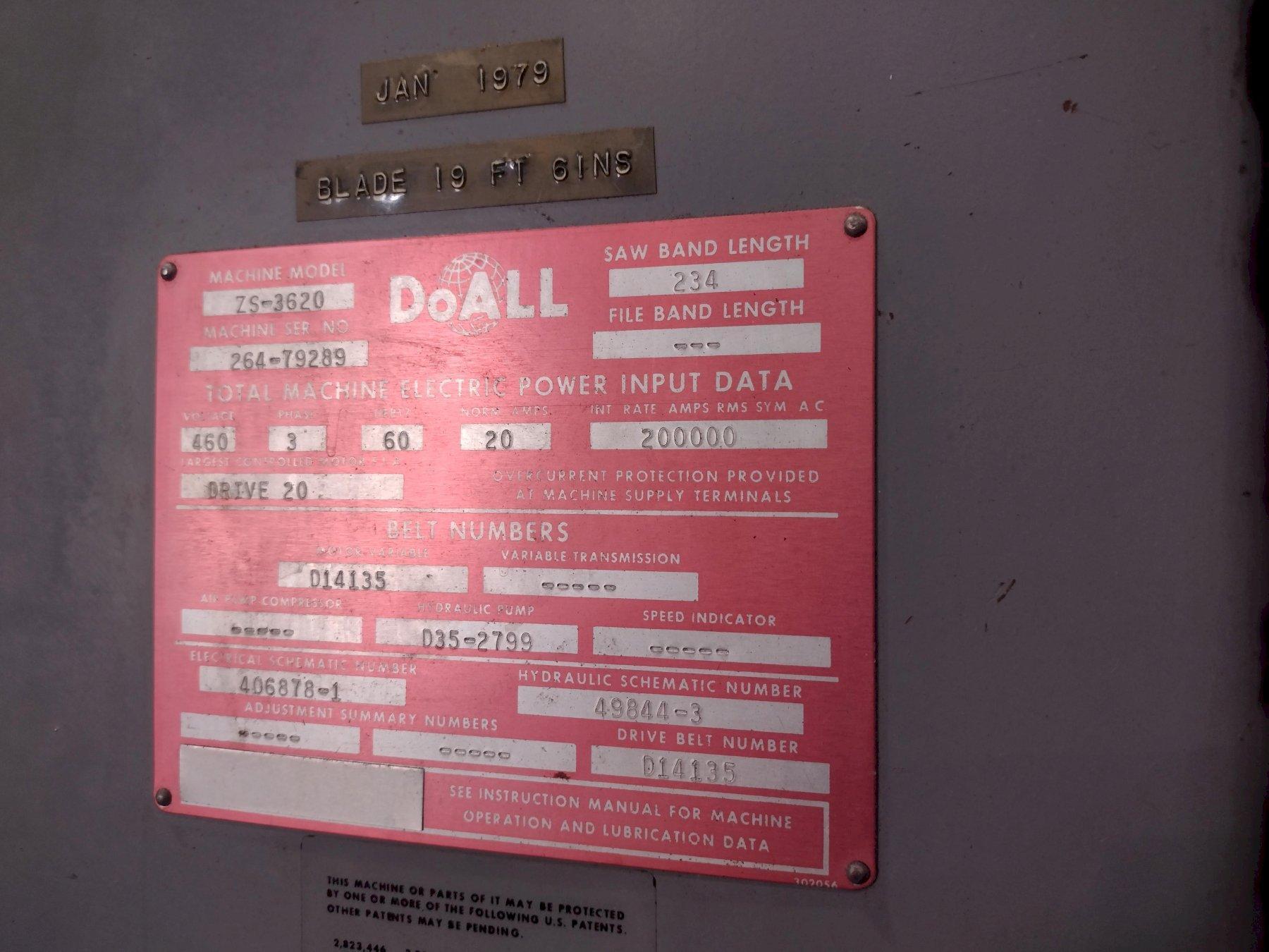 36" DOALL MODEL #ZS3620 VERTICAL BANDSAW: STOCK #21873
