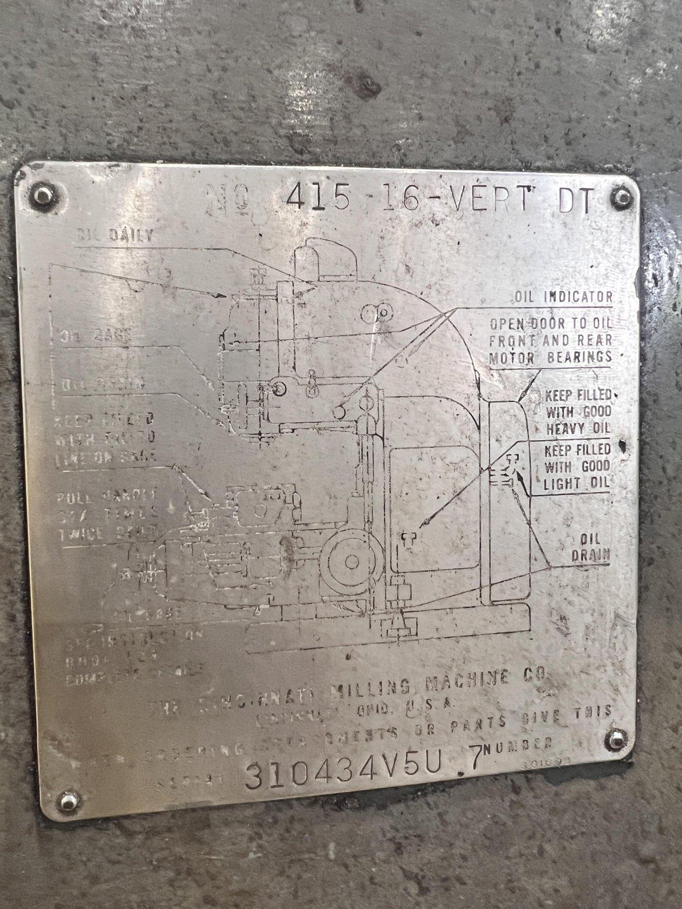 #4 CINCINNATI MODEL #412-16 VERTICAL MILLING MACHINE: STOCK #21132