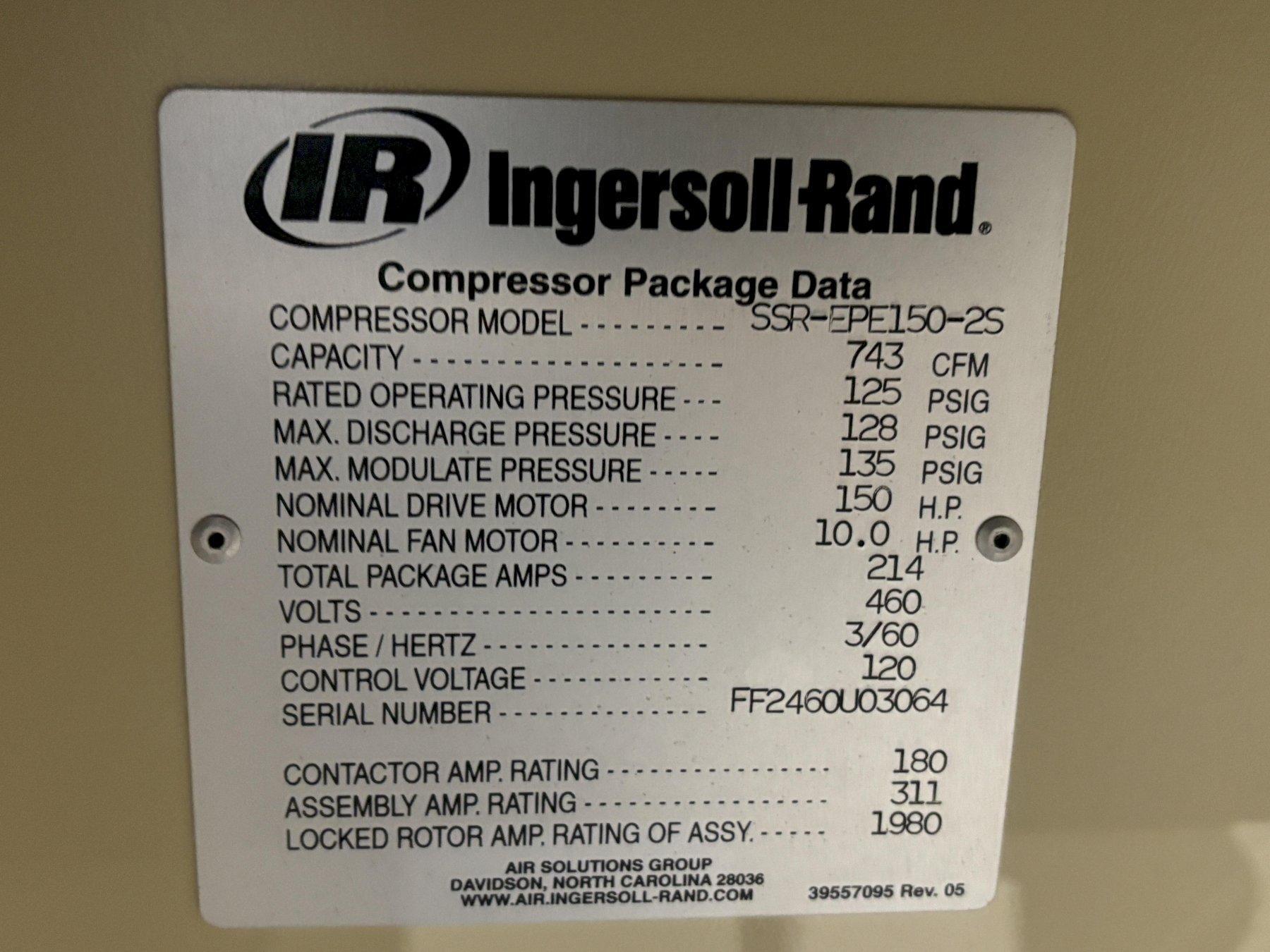 150 HP INGERSOLL RAND MODEL #NP100138 ROTARY SCREW AIR COMPRESSOR: STOCK #21033