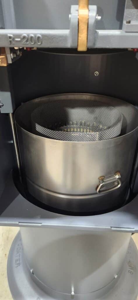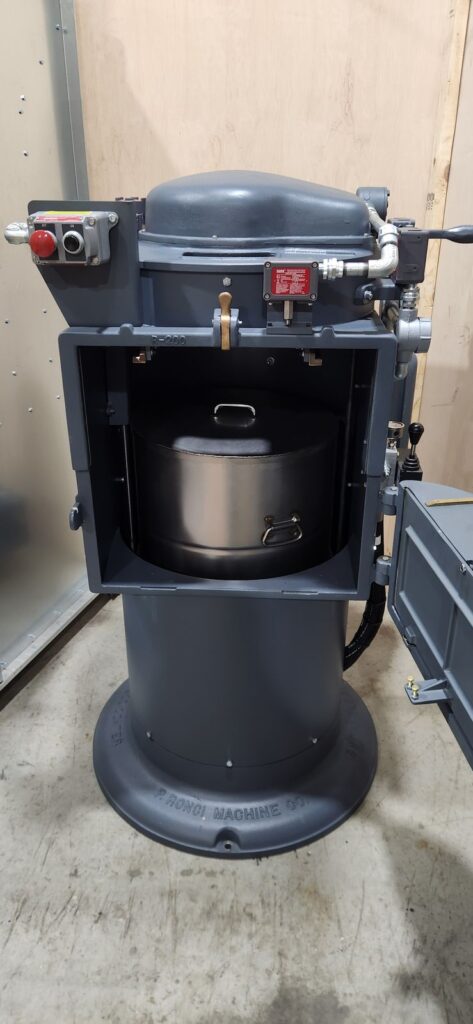 Work basket – Specially alloyed cast aluminum lined with steel mesh wire 16″ in diameter. Depth is 6″. Has Stainless pot and 2 aluminum frames. Capacity is 1206 cubic inches. All explosion-proof controls. 8-Speed spin motor.