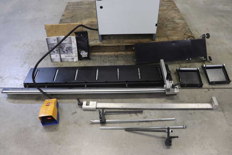 Coolant Pump, Roller Table with Work Stop, Pneumatic Vice, Spare Blade, Manuals