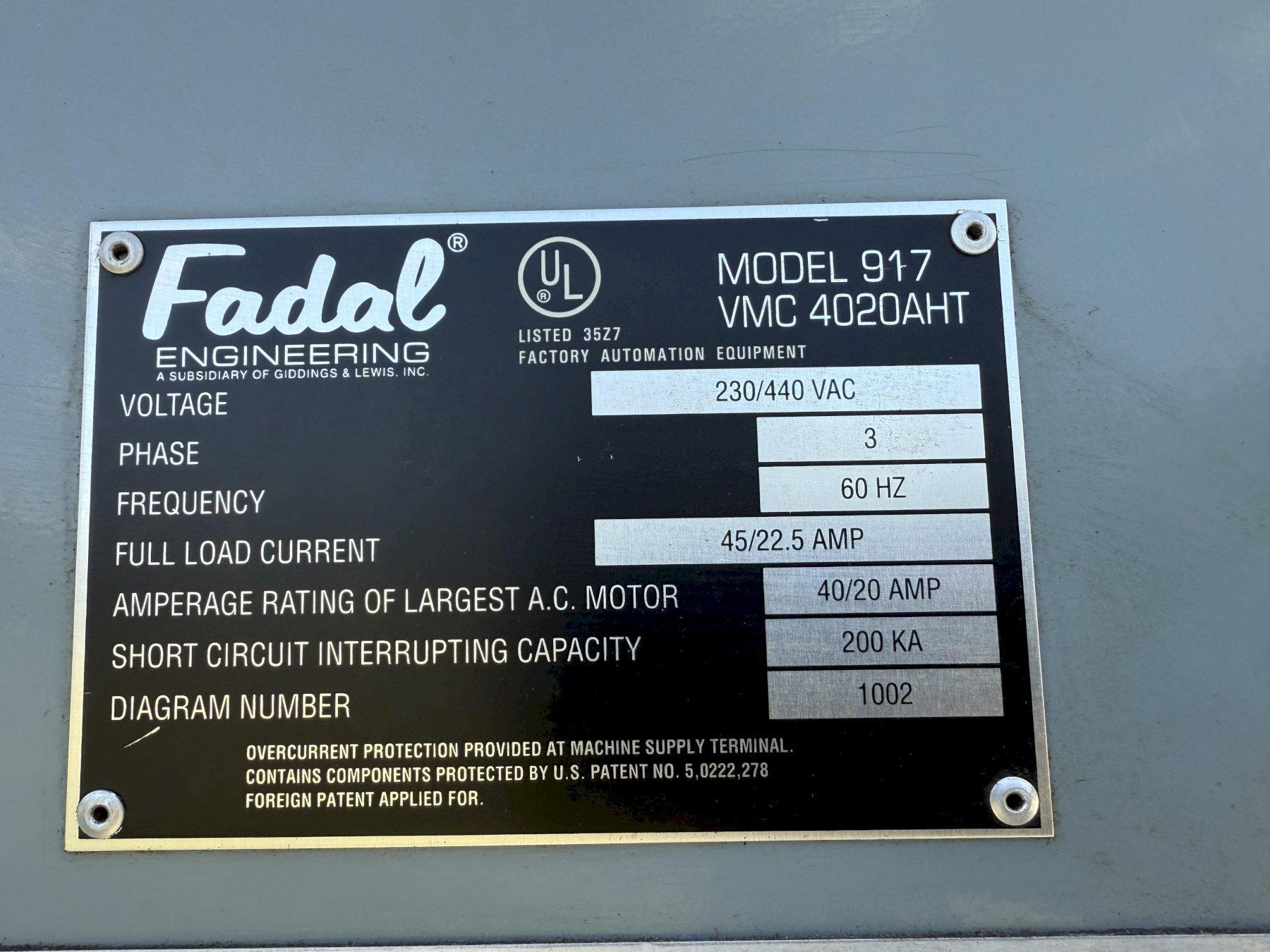 1997 Fadal VMC 4020AHT CNC Vertical Machining Center For Sale