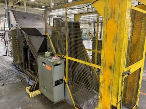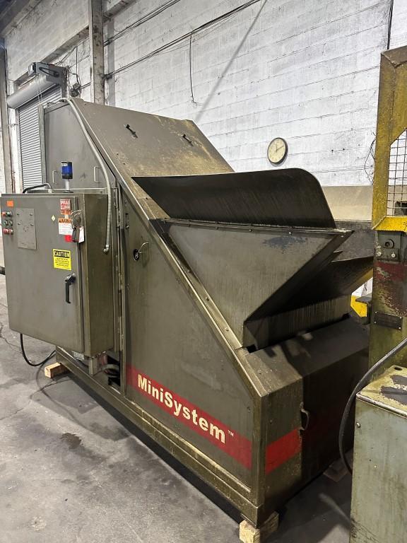 Palletized Chip Processor Complete with Fully Enclosed Hydraulic Chip Dumper.  (1) Cecor Rolling Basket with Pallet Jack.  Feed Hopper.  Auger Screw Feed Conveyor. Prab Continuous Chip Wringer.   Auger Discharge Conveyor.  Integrated Electrical Control Cabinet with PLC Controls.  Documentation