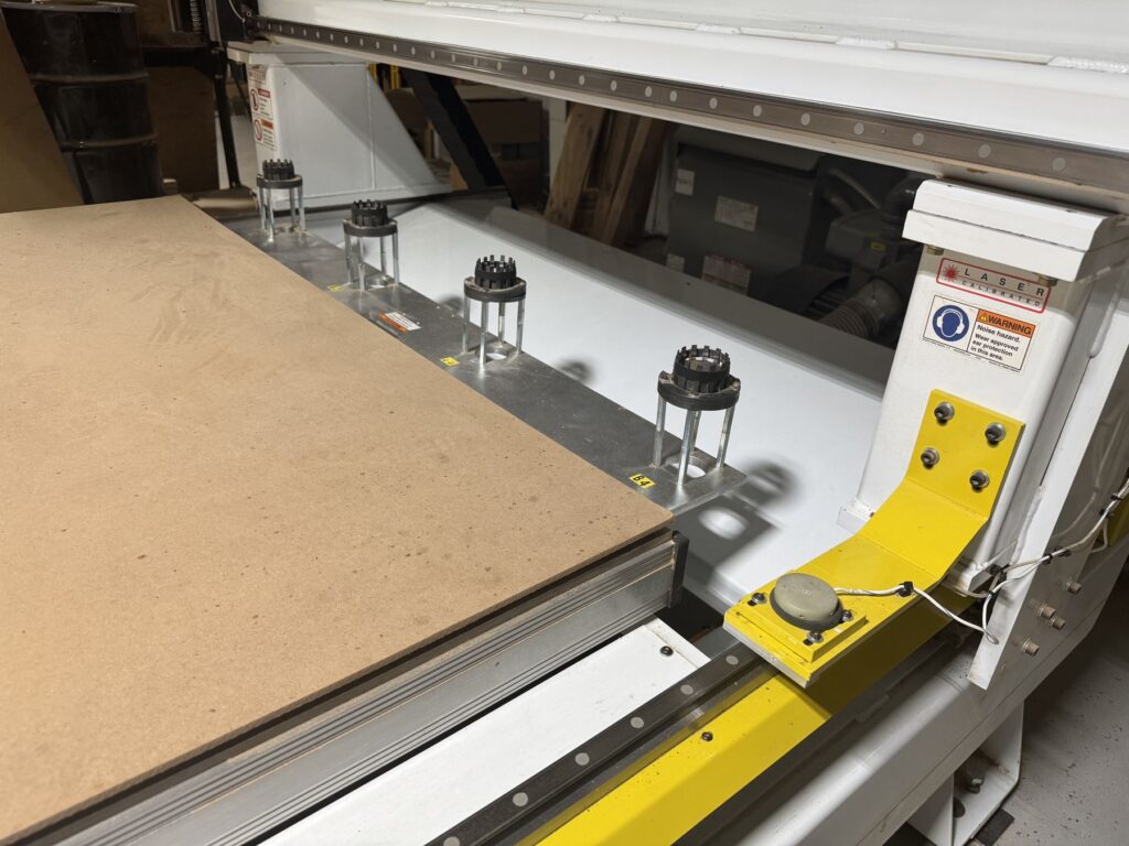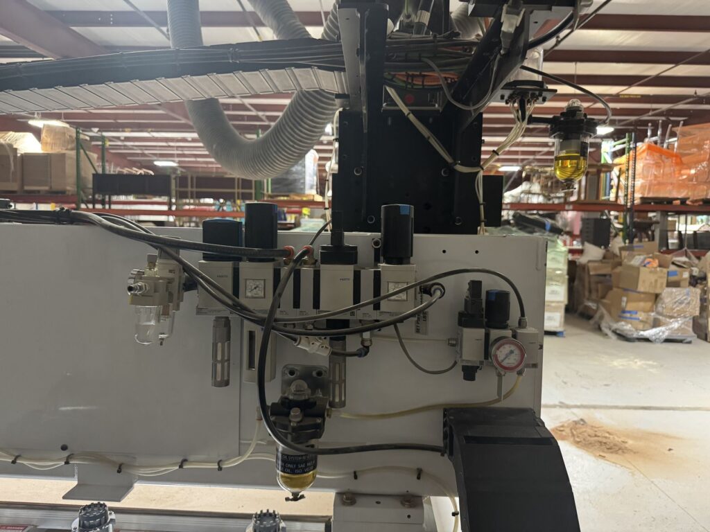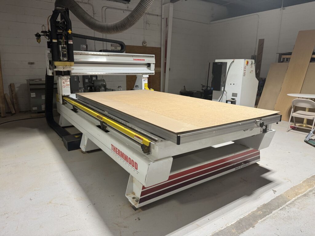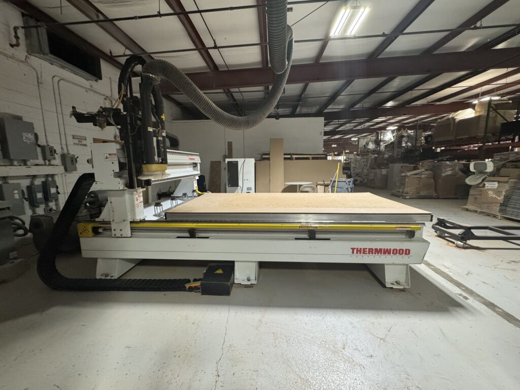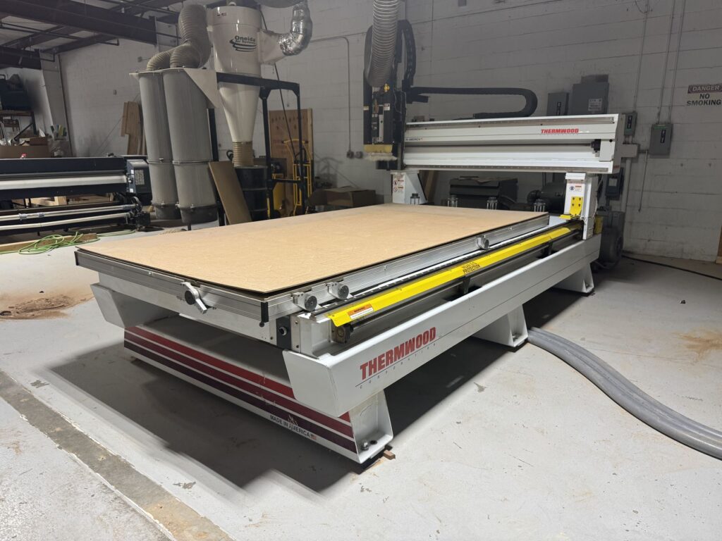 Thermwood Q Core Controller, Busch RC0400 330 CFM Vacuum Pump, 12 HP HSD 24,000 RPM spindle, Pop-up Pins, Automatic Lubrication, ATC, Tool Length Sensor, Oneida 7.5 HP Dust Collector, Gantry Spacers (Takes Clear Height to 12″)