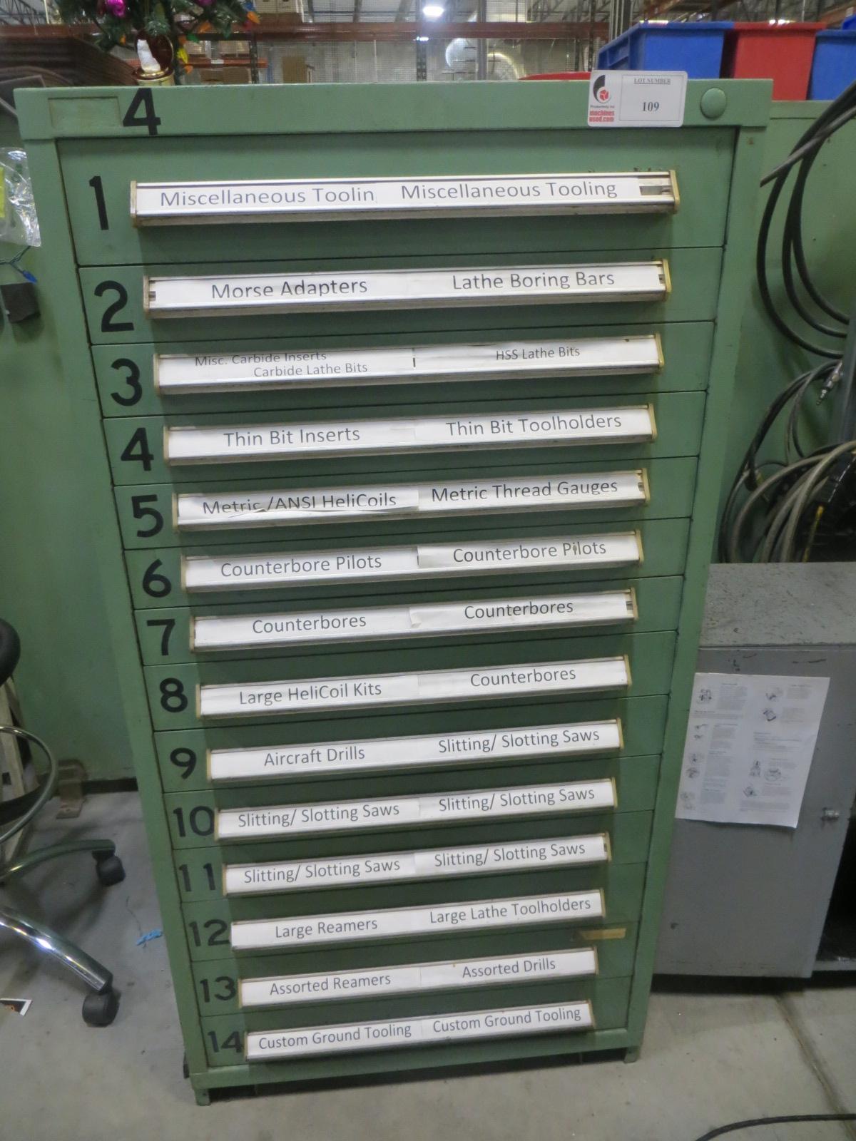 Lot 109: Heavy Duty 14 Drawer Cabinet WITH CONTENTS