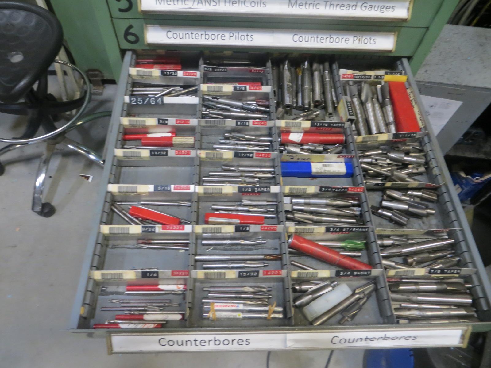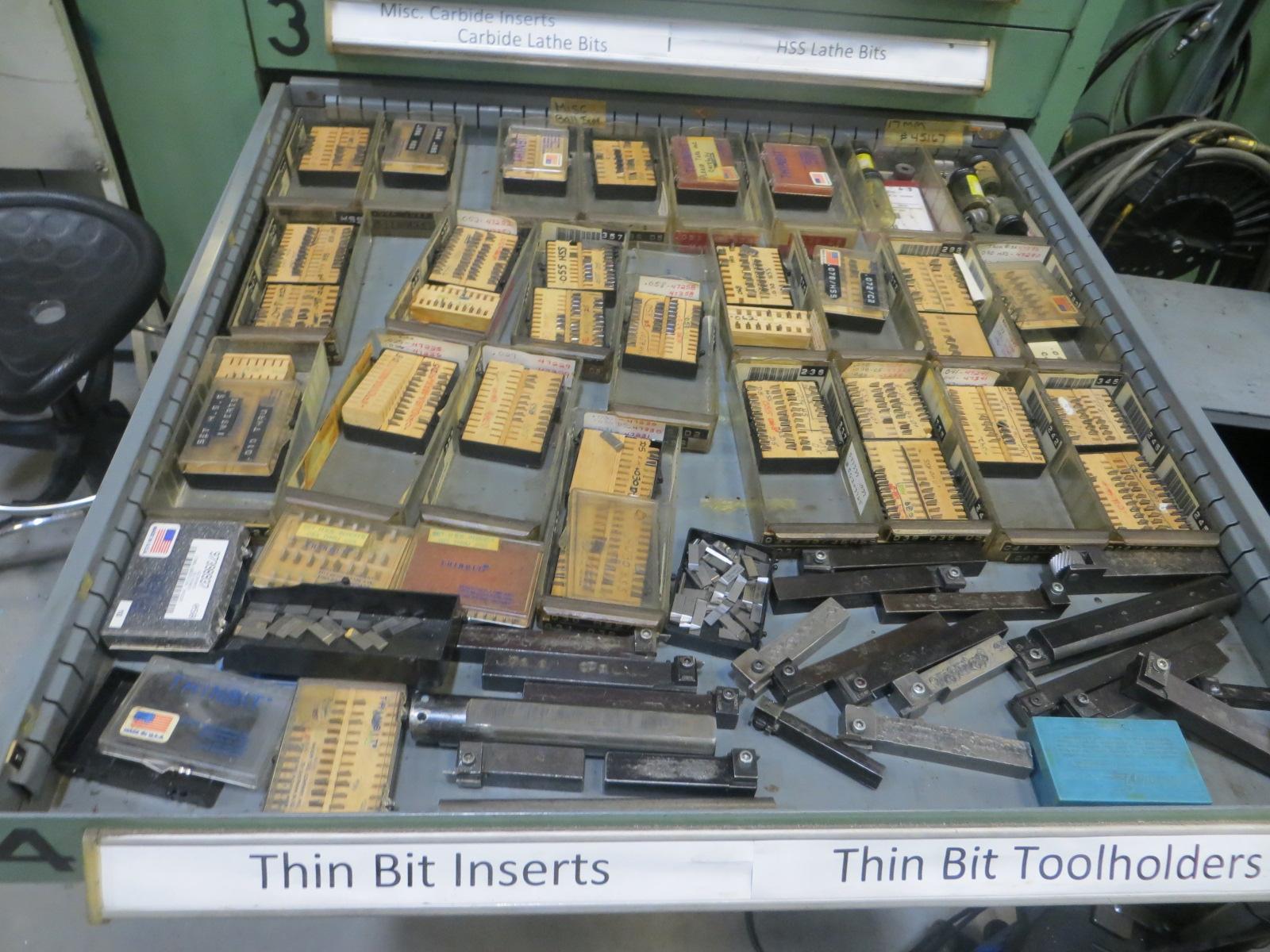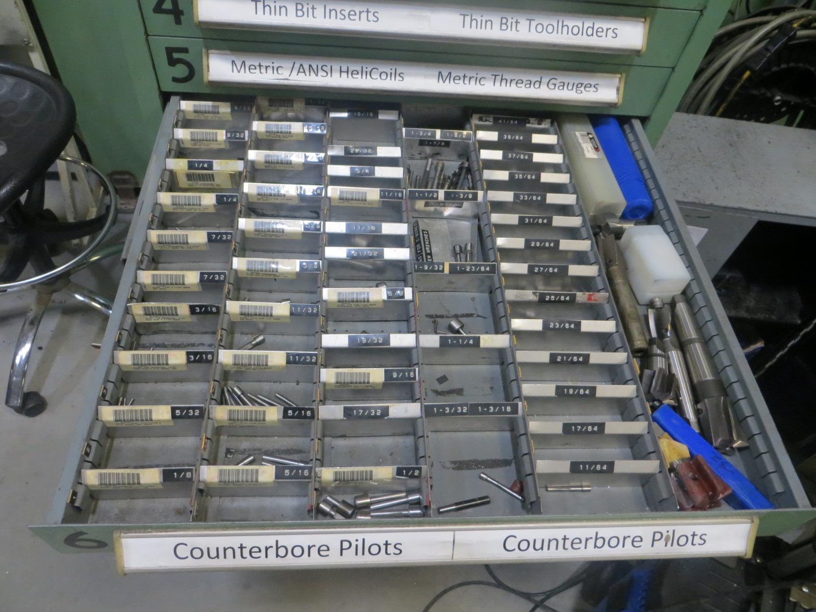 Equipped With: Large Assortment of Tooling, Carbide Inserts, Helicoil Sets, Counterbore Pilots, Counterbores, Reamers, Slitting/Slotting Saws