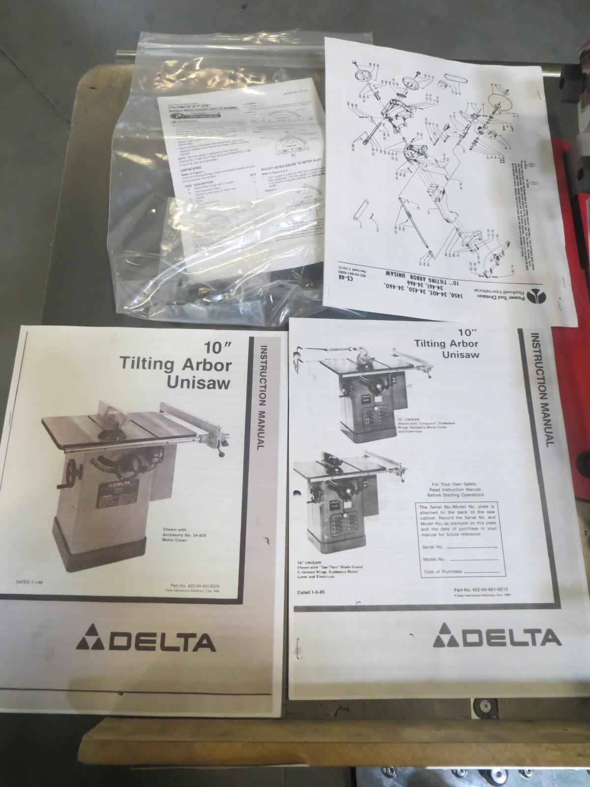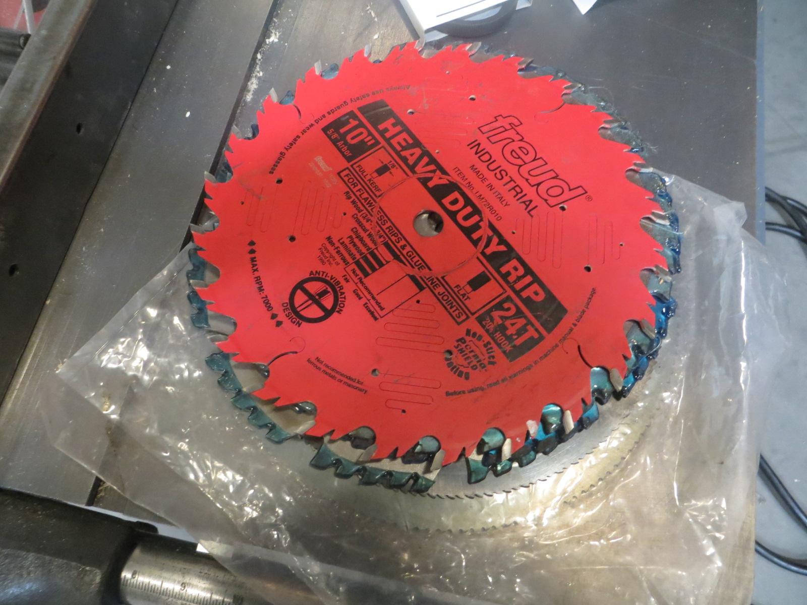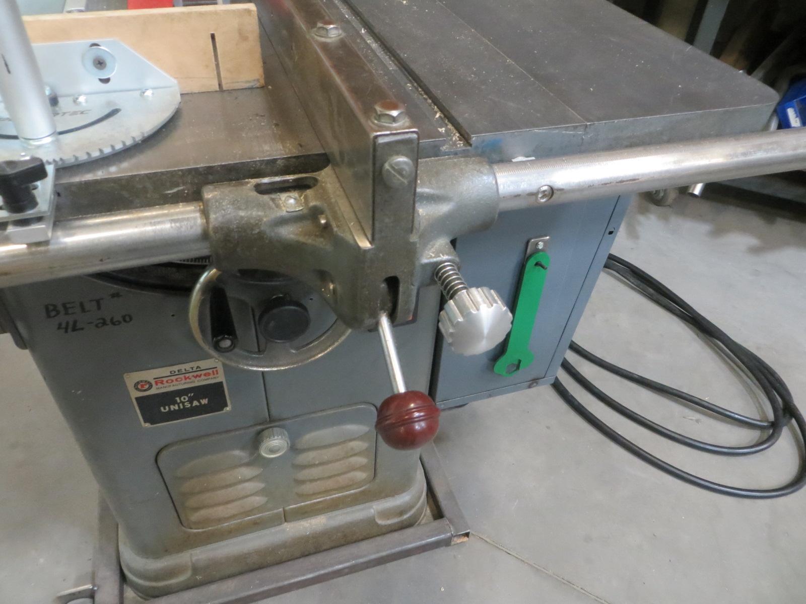 Lot 152: Rockwell Series 34-50 10" Table Saw with Assorted Blades and Manuals, Portable on Casters