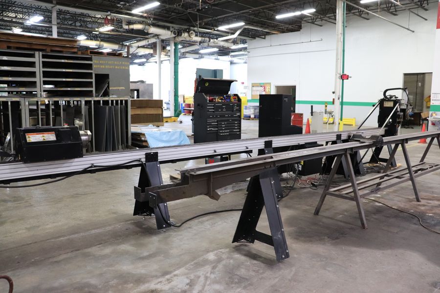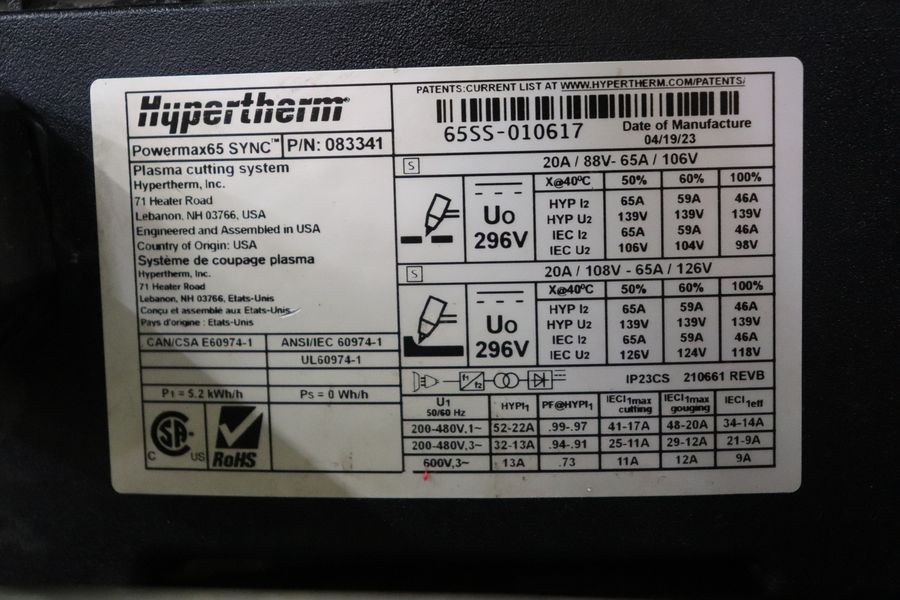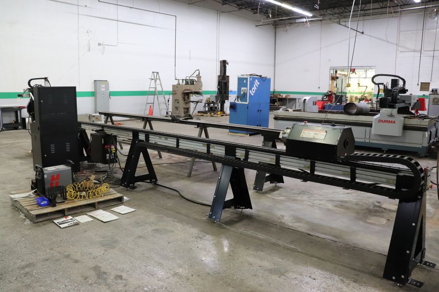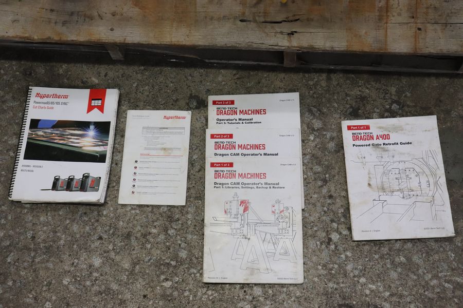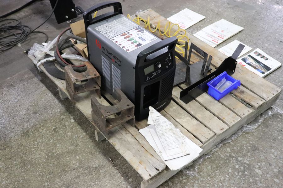 Marker, Engraver, Plasma Torch, and Laser Light Heads, Motorized Front Gate, Channel / Angle Attachment, Material Support Lift, Hypertherm Powermax 65 Sync Power Source, Custom Dry End Support System, Manuals