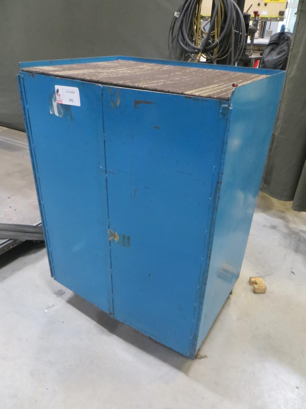 Lot 191: Metal Cabinet, 2 Door on Casters W Contents
