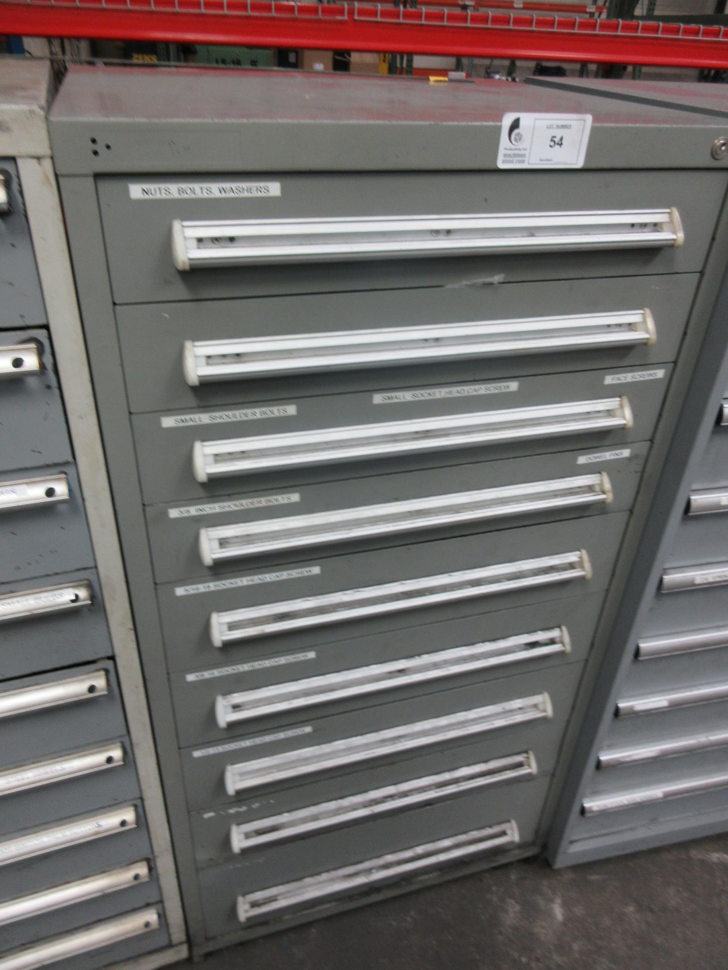 Lot 54: 9 Drawer Heavy Duty Cabinet with Fasteners, Nuts, Bolts, Washers