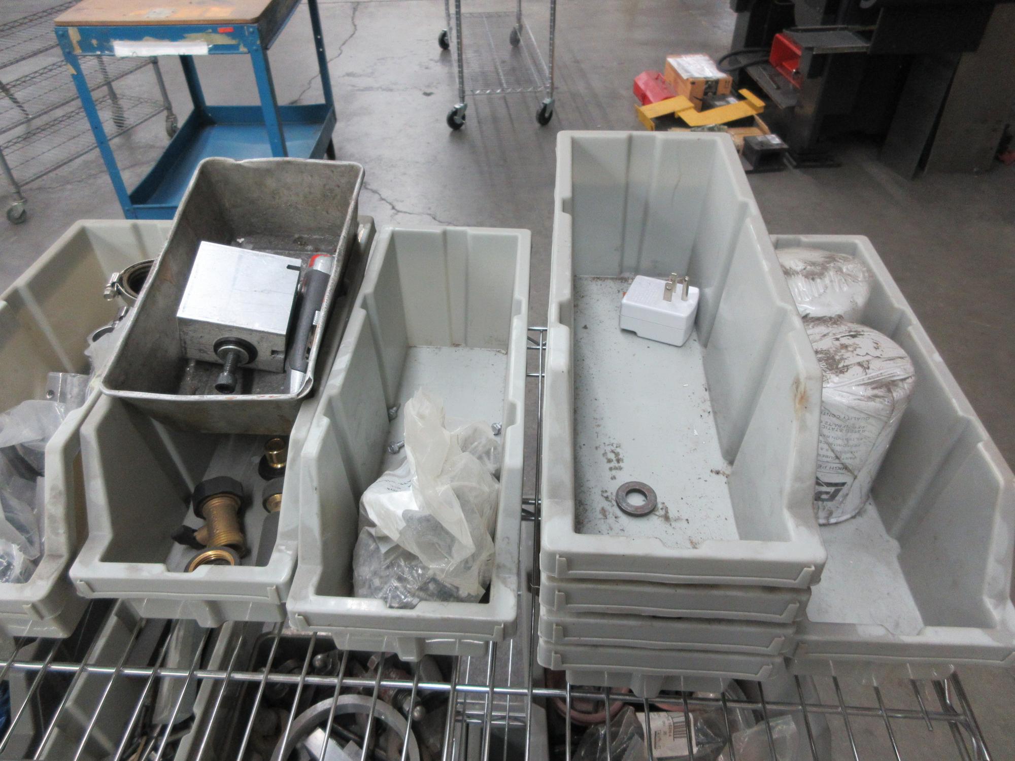 Lot 207: Rolling 3 Shelf Wire Racking with Contents, Plastic Bins, Miscellaneous Fittings and Hardware
