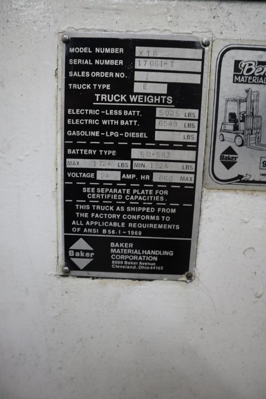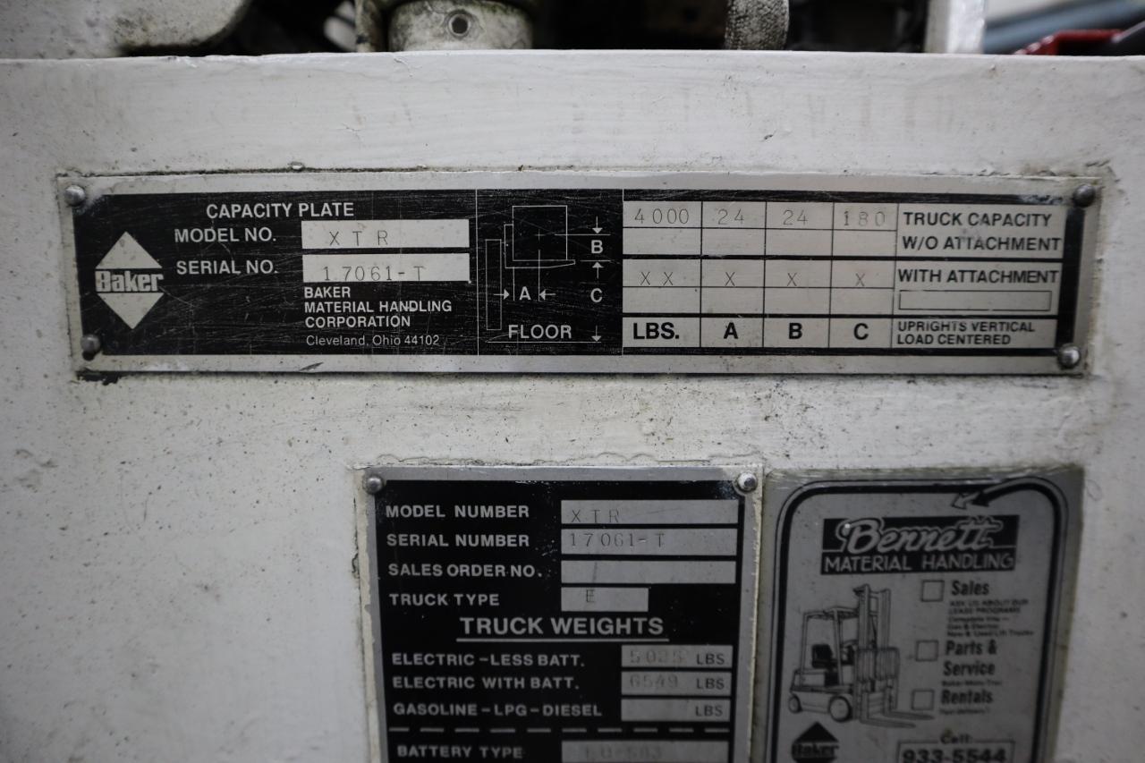 Lot 176: Baker XTR Stand-Up Electric Forklift, 4,000 Lb Cap, 21" Reach, 180" Max Lift Height,