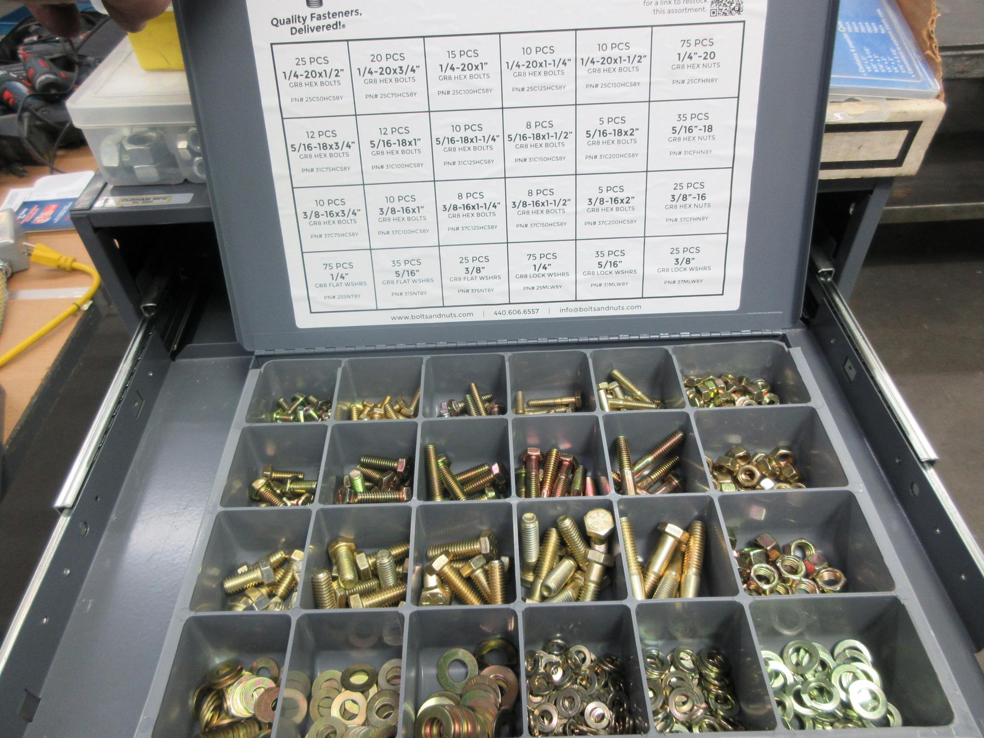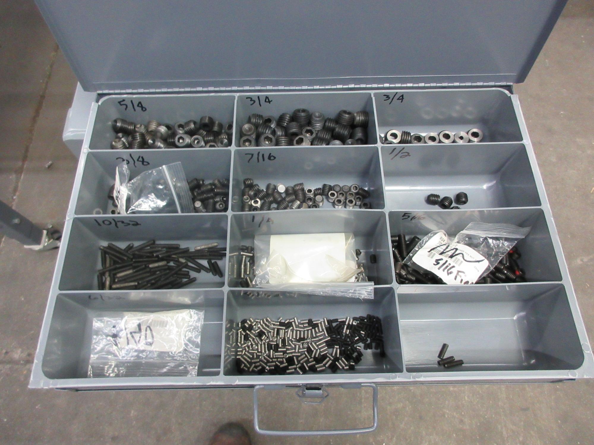 Lot 77: Metal Organizer on Steel Shelf with Contents: Metric / Standard Nuts, Bolts, Screws, Washers