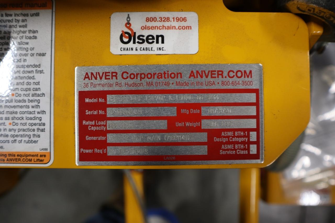Lot 102: Anver VPF-57-DCP-L3P/6P Vacuum Sheet Lifter, Leakage Sensor, (6) Vacuum Cups, 900 Lb Capacity