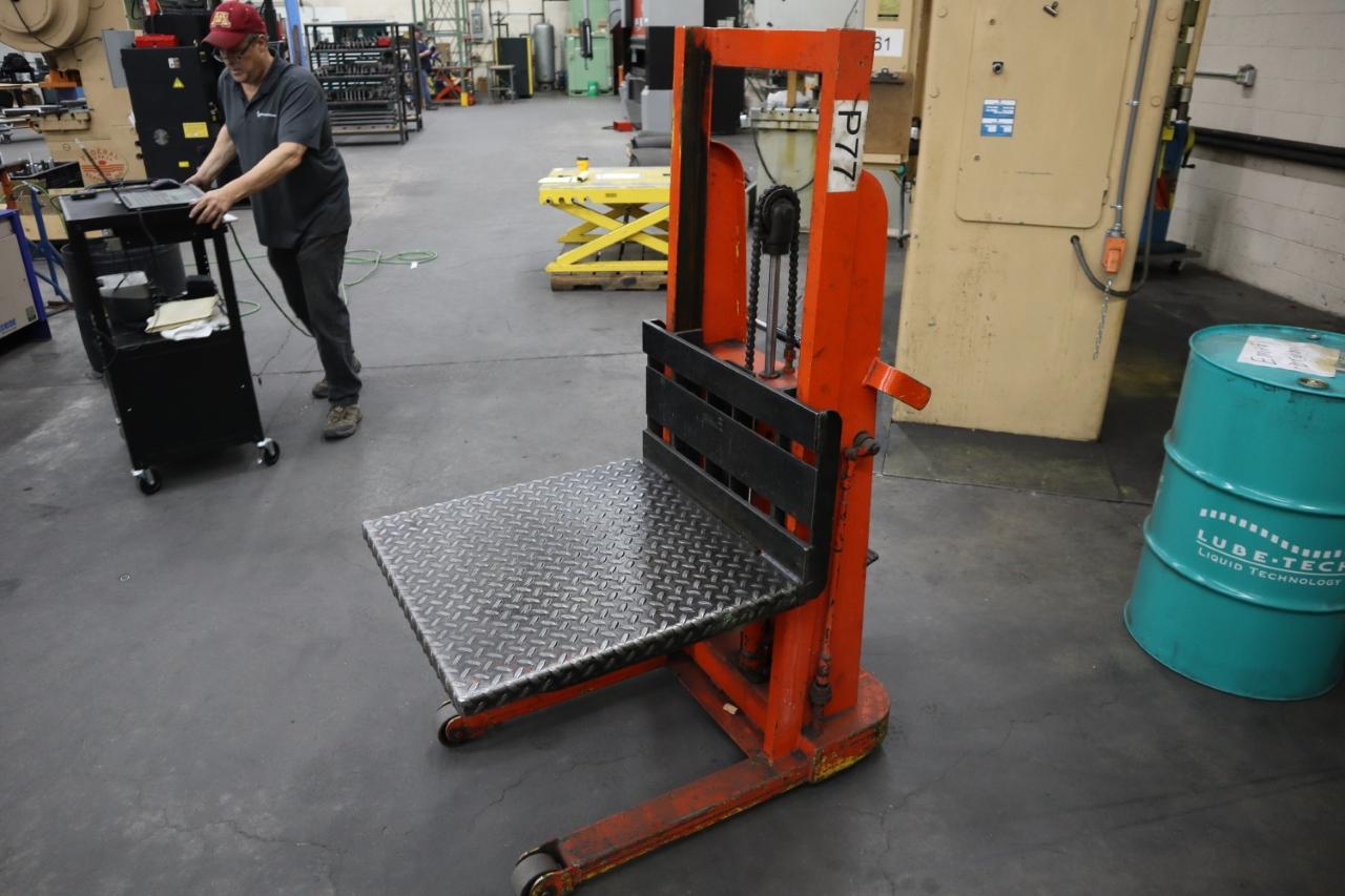 Lot 178: Big Joe Die Cart Model 2154, 1,000 Lb Capacity, 54" Lift Height, 27" x 27" Platform, Foot Pump Lift, Manual Travel
