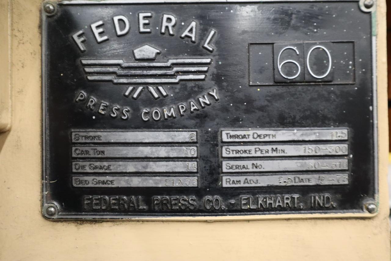 Manufacturer: Federal Press Company Model: 60 Year: 1973 Serial Number: 60-316