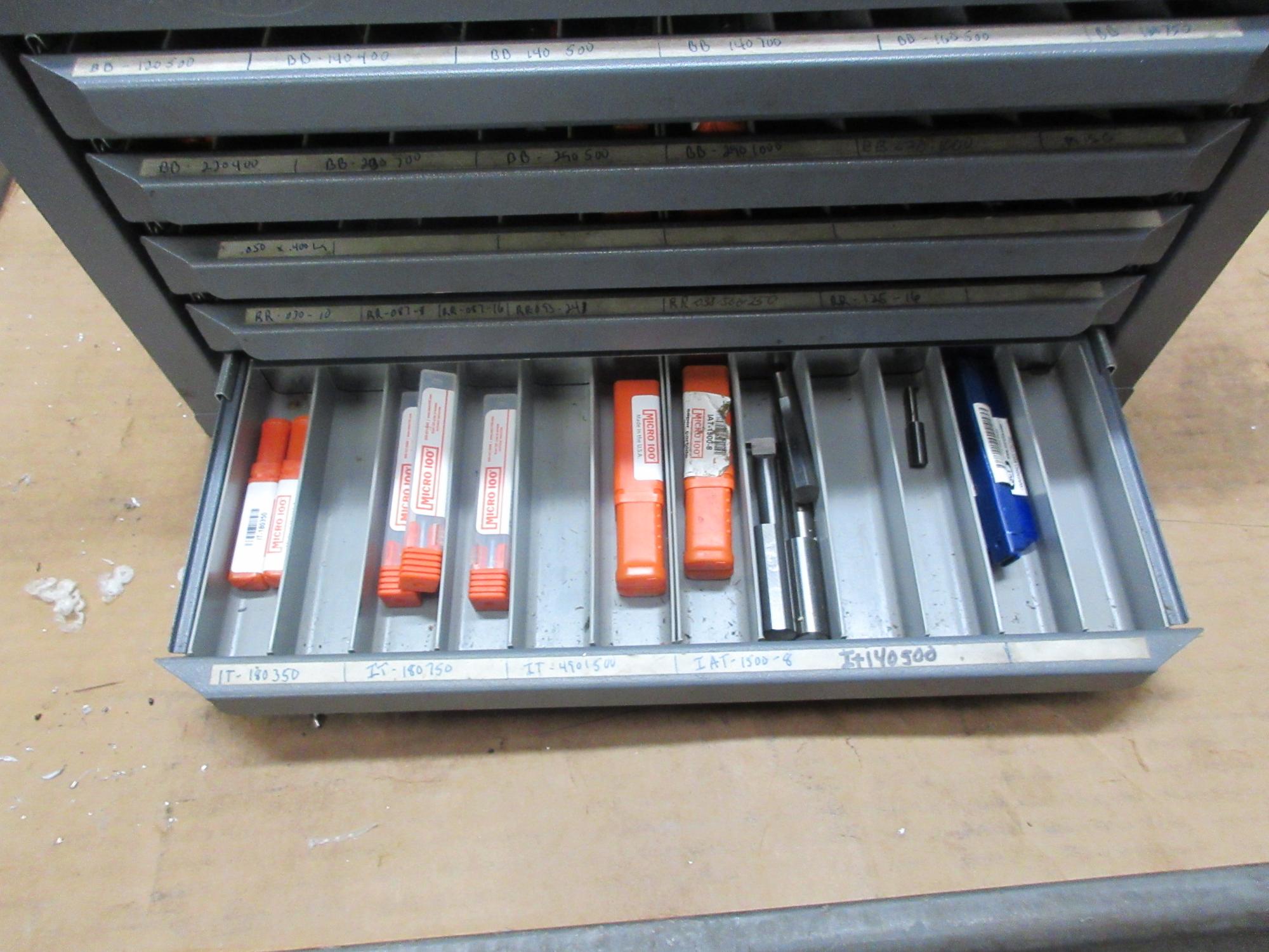 Lot 144: Huot 5 Drawer Drill Index with Contents of Small Solid Carbide Boring Bars, Many are New