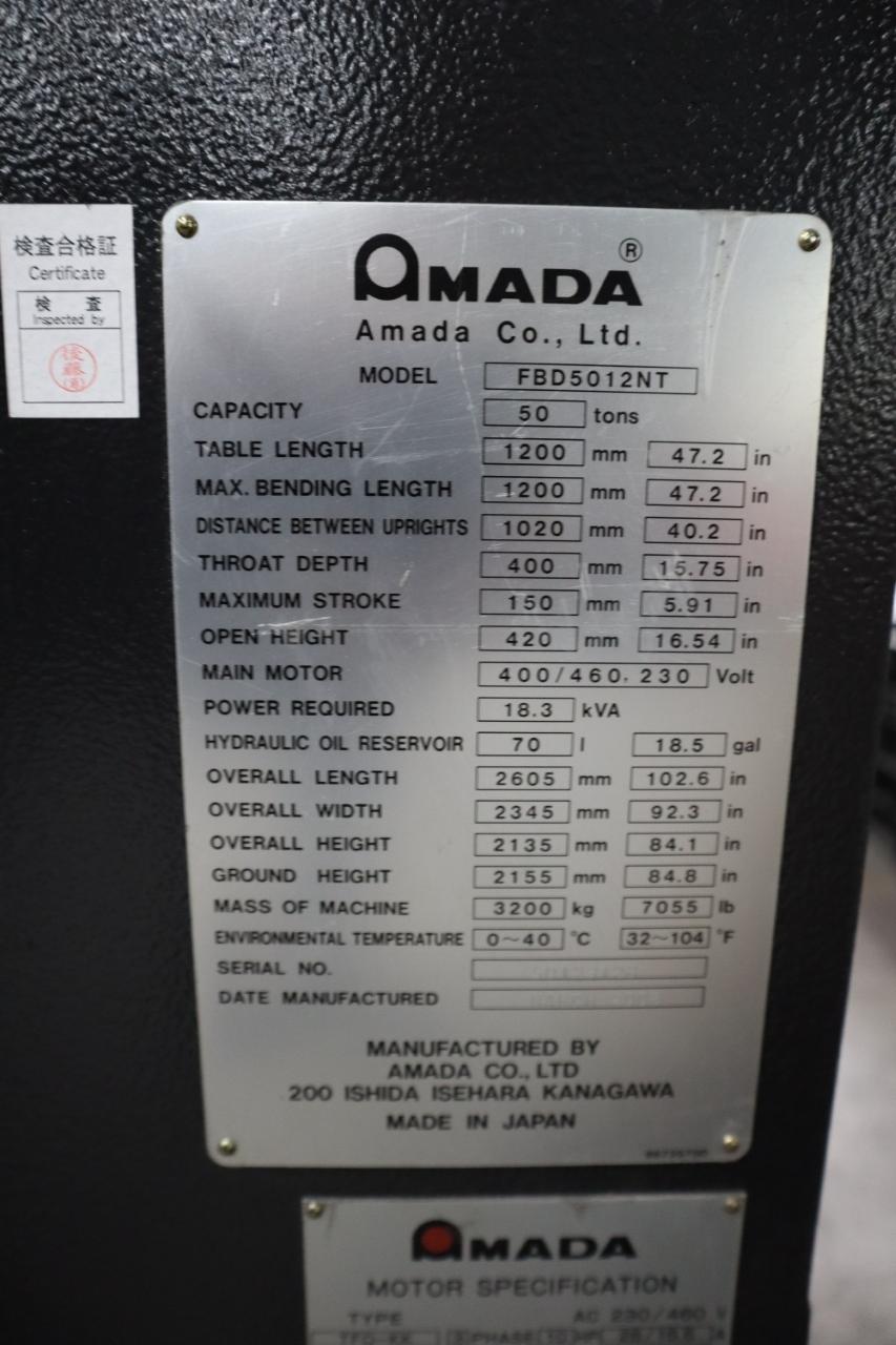 Used Amada FBD-5012NT CNC Hydraulic Press Brake for sale from Machinesused.com. This 55-ton x 47.2" press brake features AMNC PC control, a 6-axis backgauge, and Lazer Curtain safety system for precise, efficient, and safe metal forming. Experience Amada’s reliability and CNC accuracy — see full specs, photos, and pricing at Machinesused.com.