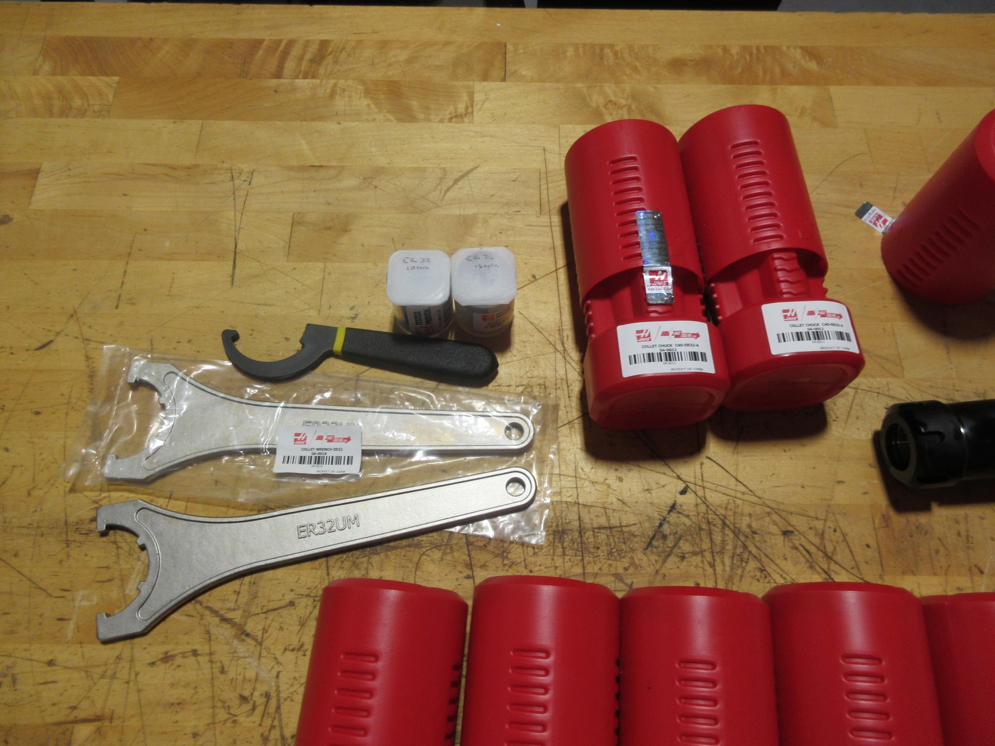 Lot 215: Haas ER32 CAT40 Tool Holders (10) Wrenches & Collets NEW!