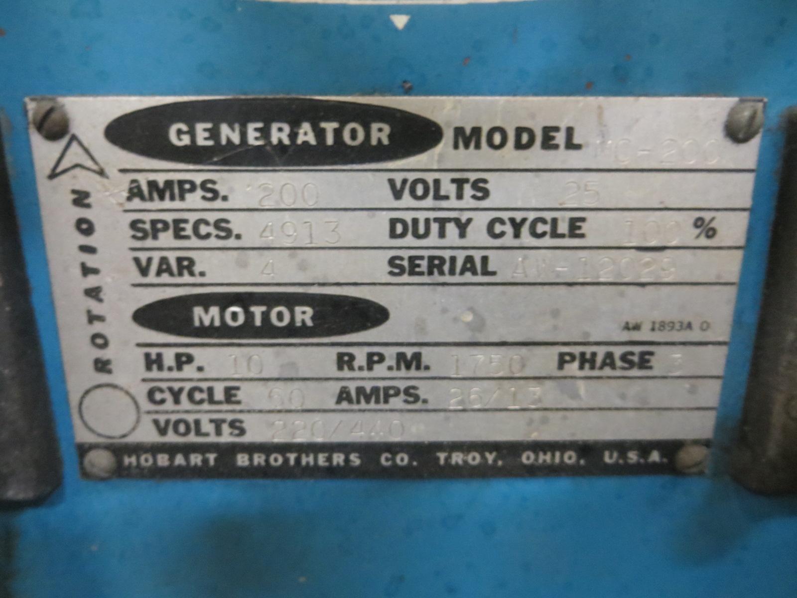 Manufacturer: Hobart Model: MC 200 Serial Number: AW-12029