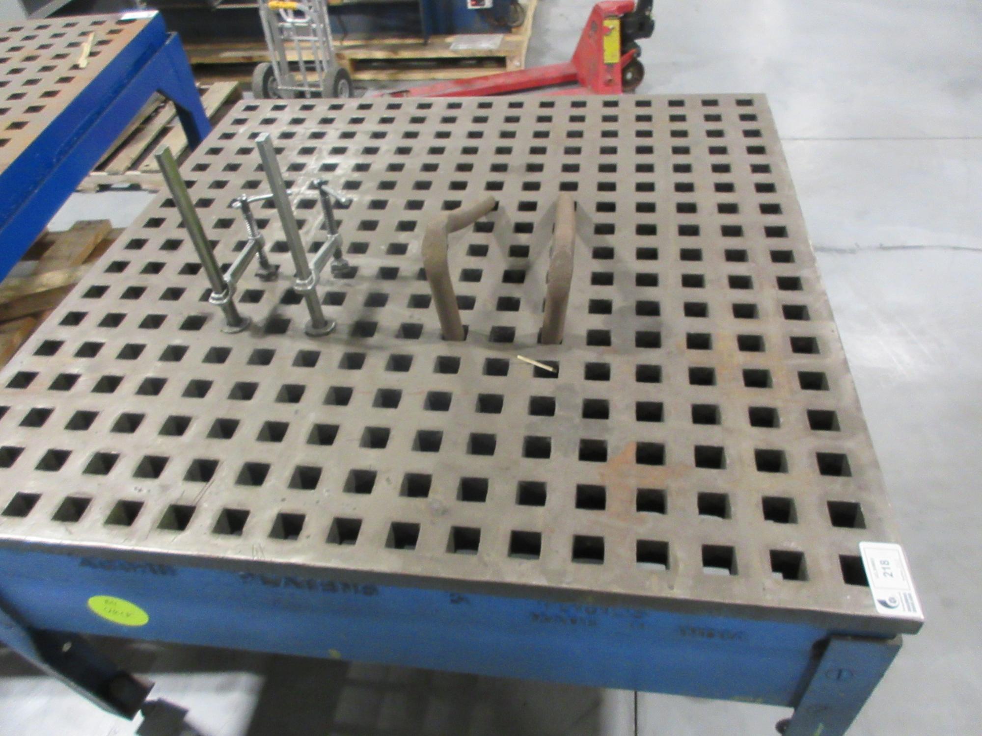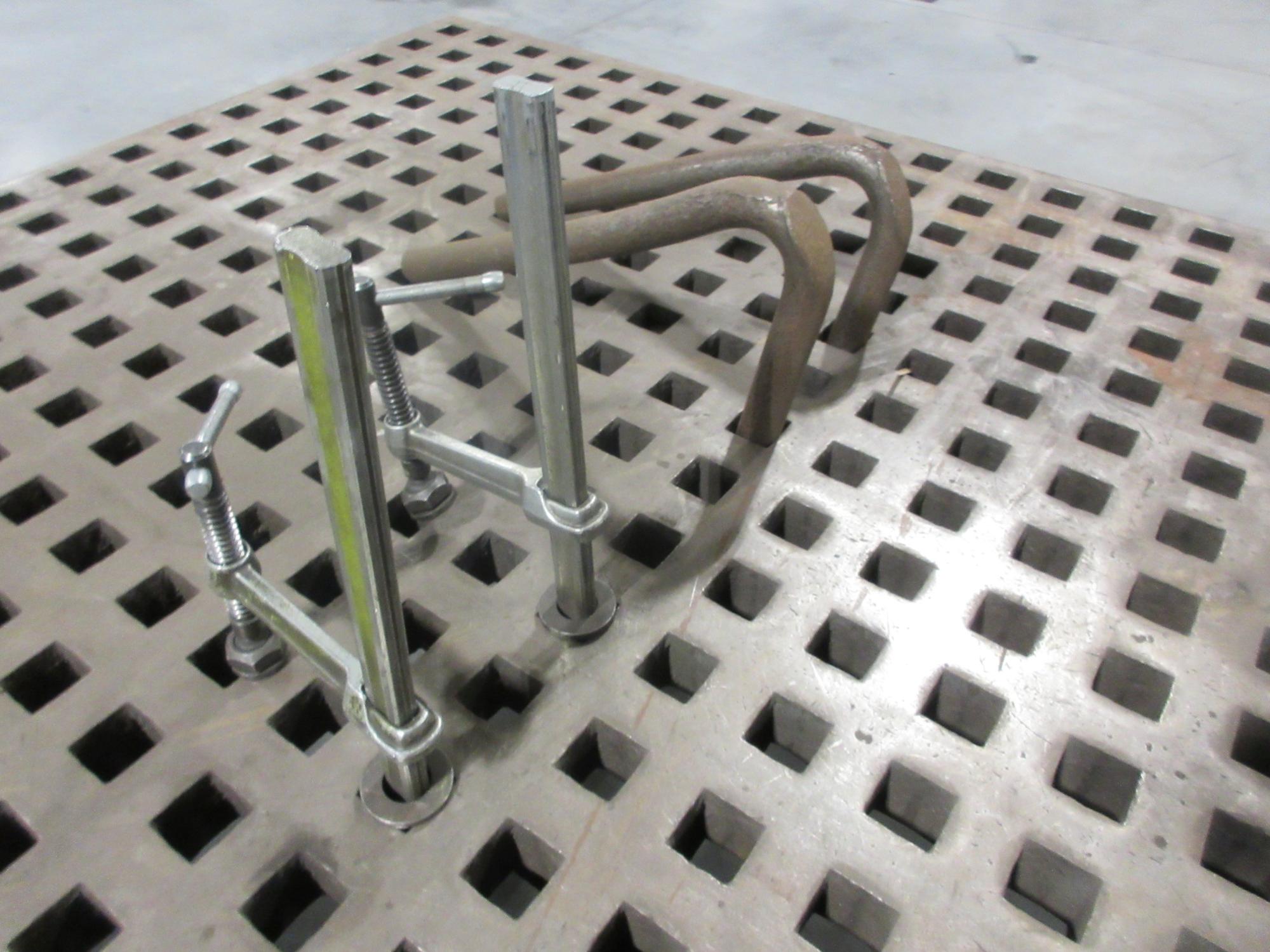 Lot 218: Acorn 5’ x 5’ Welding Table Platen with Adjustable Feet and Assorted Tooling