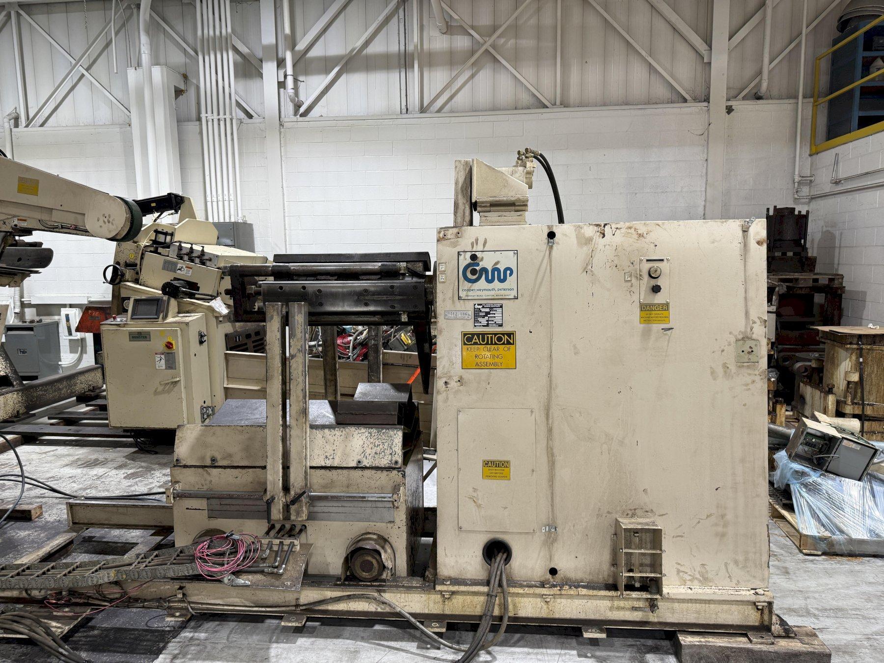 Looking for heavy-duty coil handling equipment? S&G Press has a robust used Cooper-Weymouth-Peterson coil feed line available, perfect for demanding metal stamping operations. This 24-inch coil line boasts a 20,000 lbs coil capacity and can process material up to .187" thick.