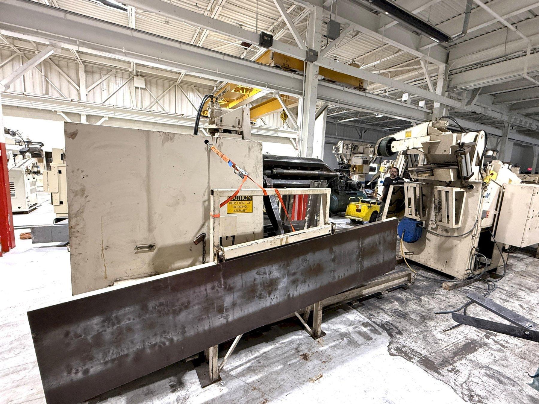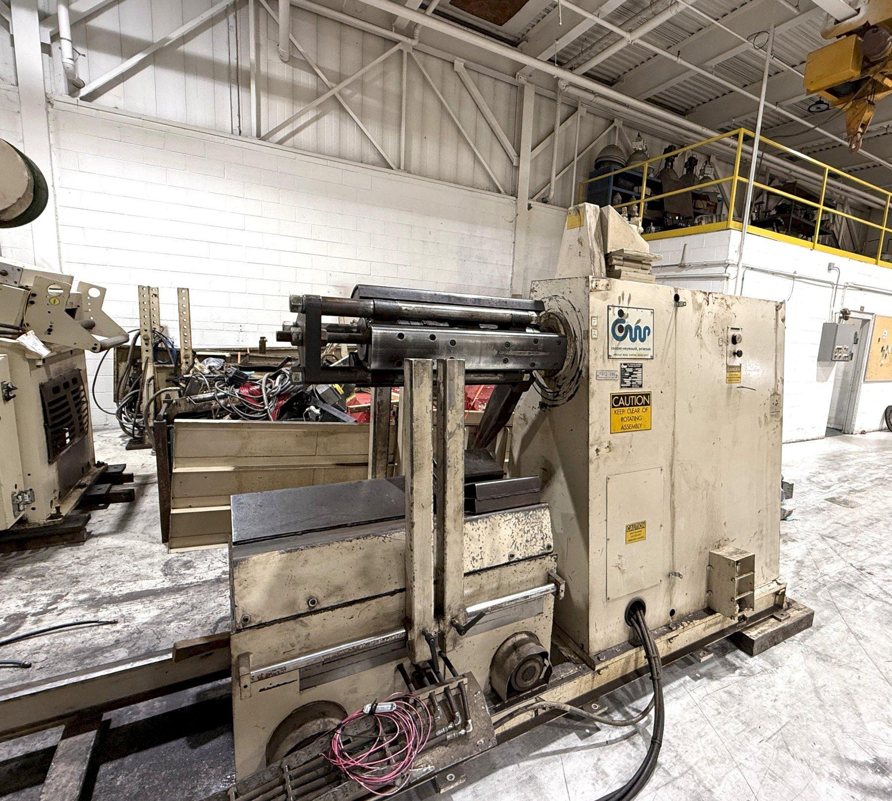 This 24" Cooper Weymouth Peterson Servo Heavy Duty Coil Handling Equipment can be seen under power at the S&G Press Warehouse.