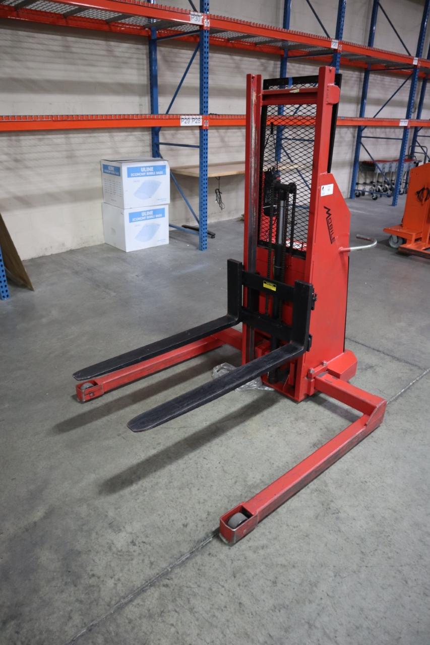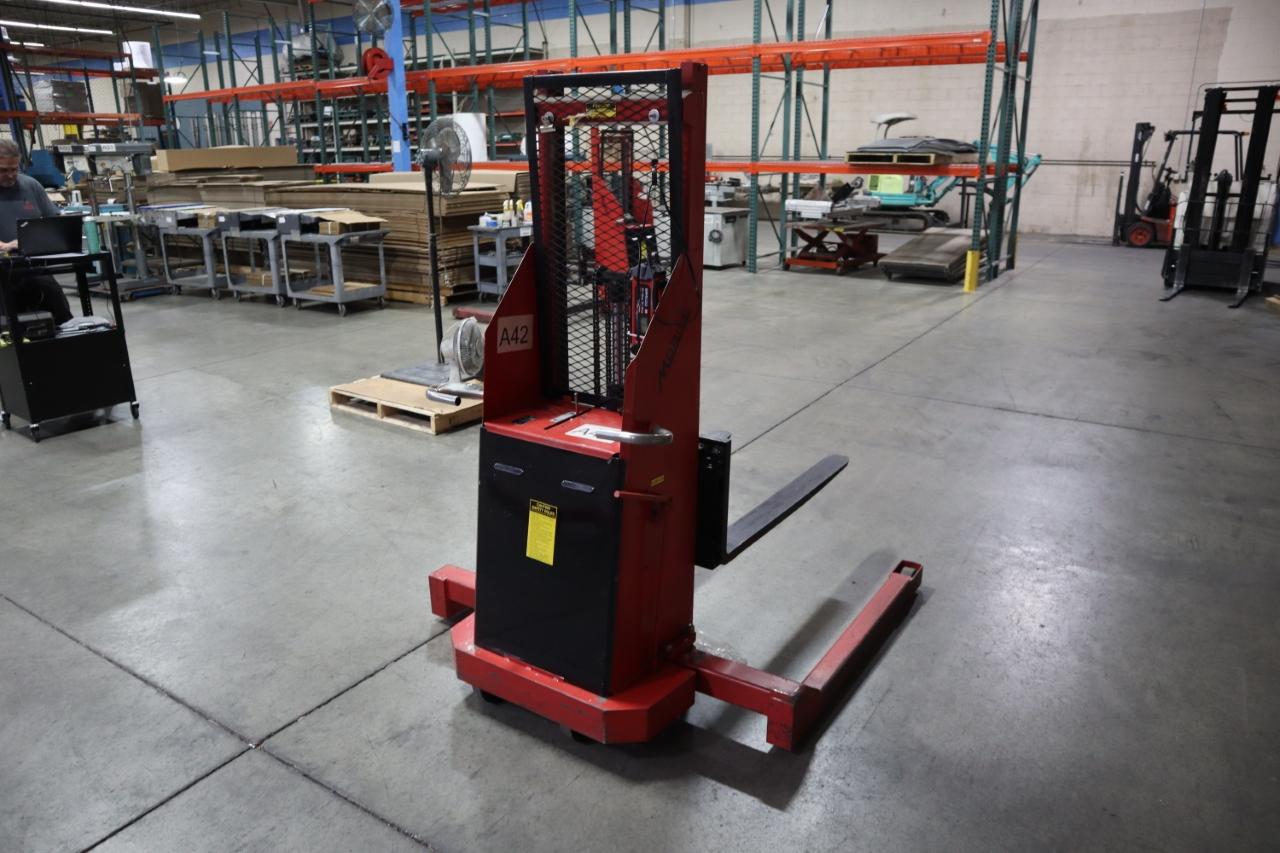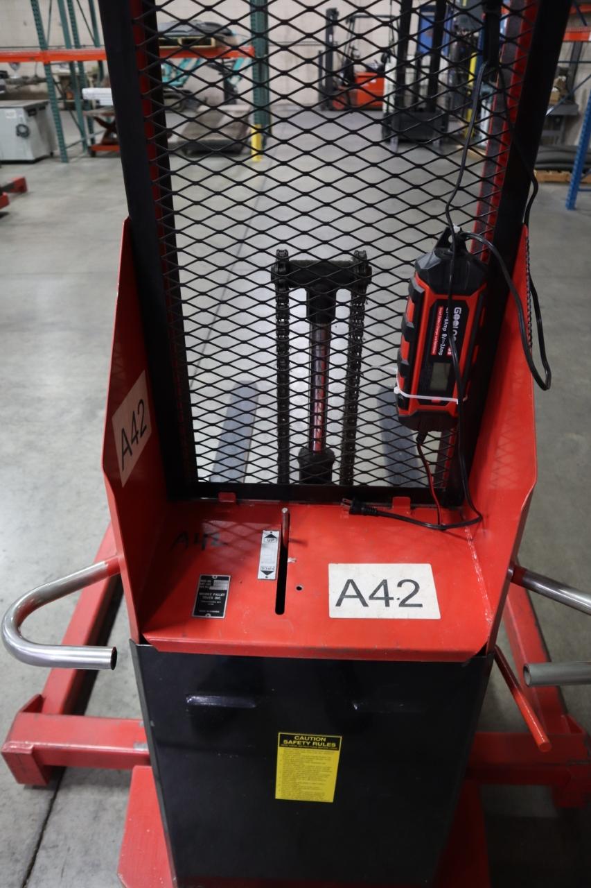 Lot 65: Mobile Pallet Truck B60-CSA Electric Stacker Lift Truck, 1,500 # Cap, 42" Forks, 60" Max Height, 12 Volt Battery, Charger