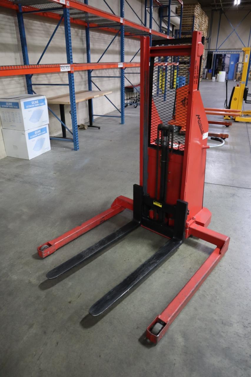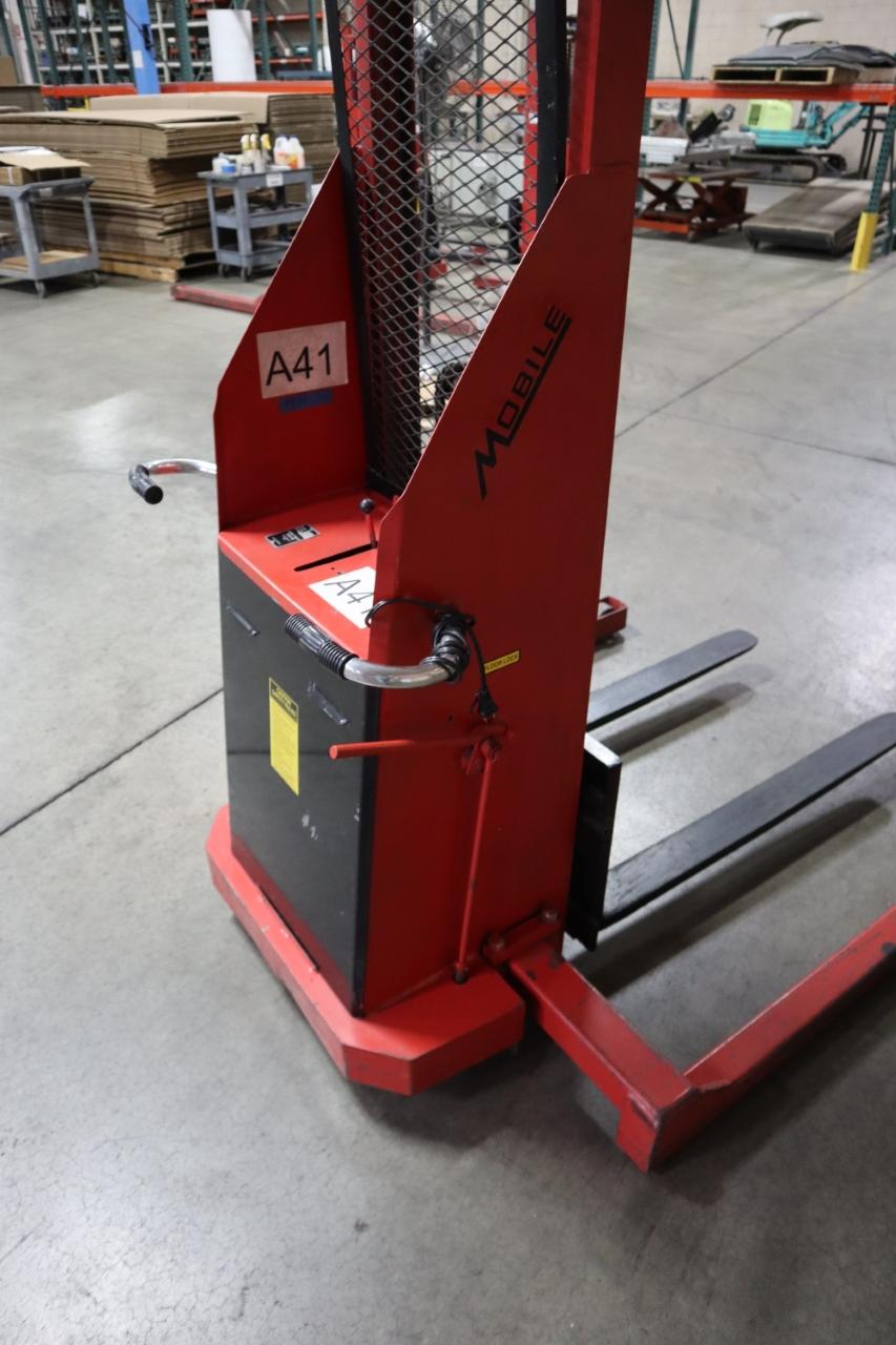 Lot 140: Mobile Pallet Truck B60-CSA Electric Stacker Lift Truck, 1,500 # Cap, 42" Forks, 60" Max Height, 12 Volt Battery, Charger