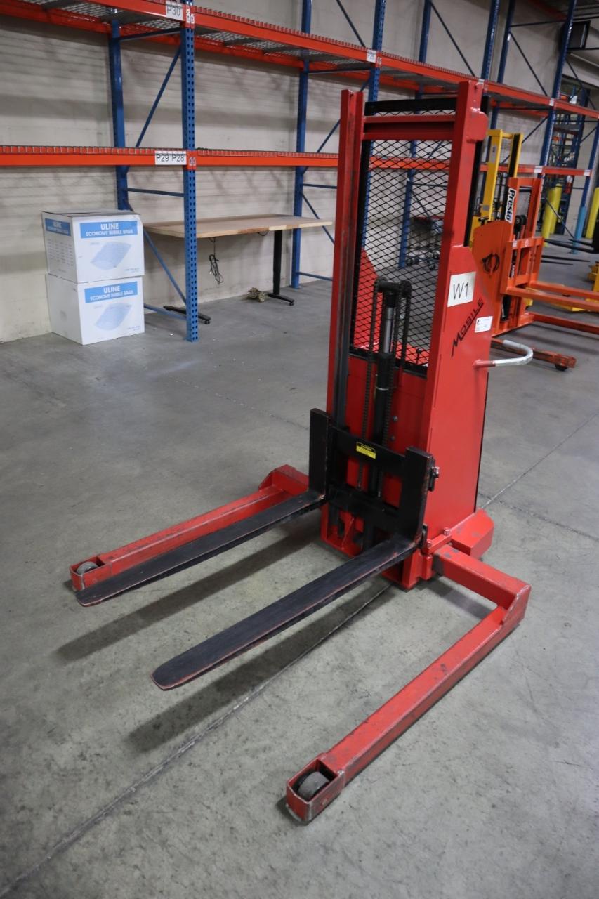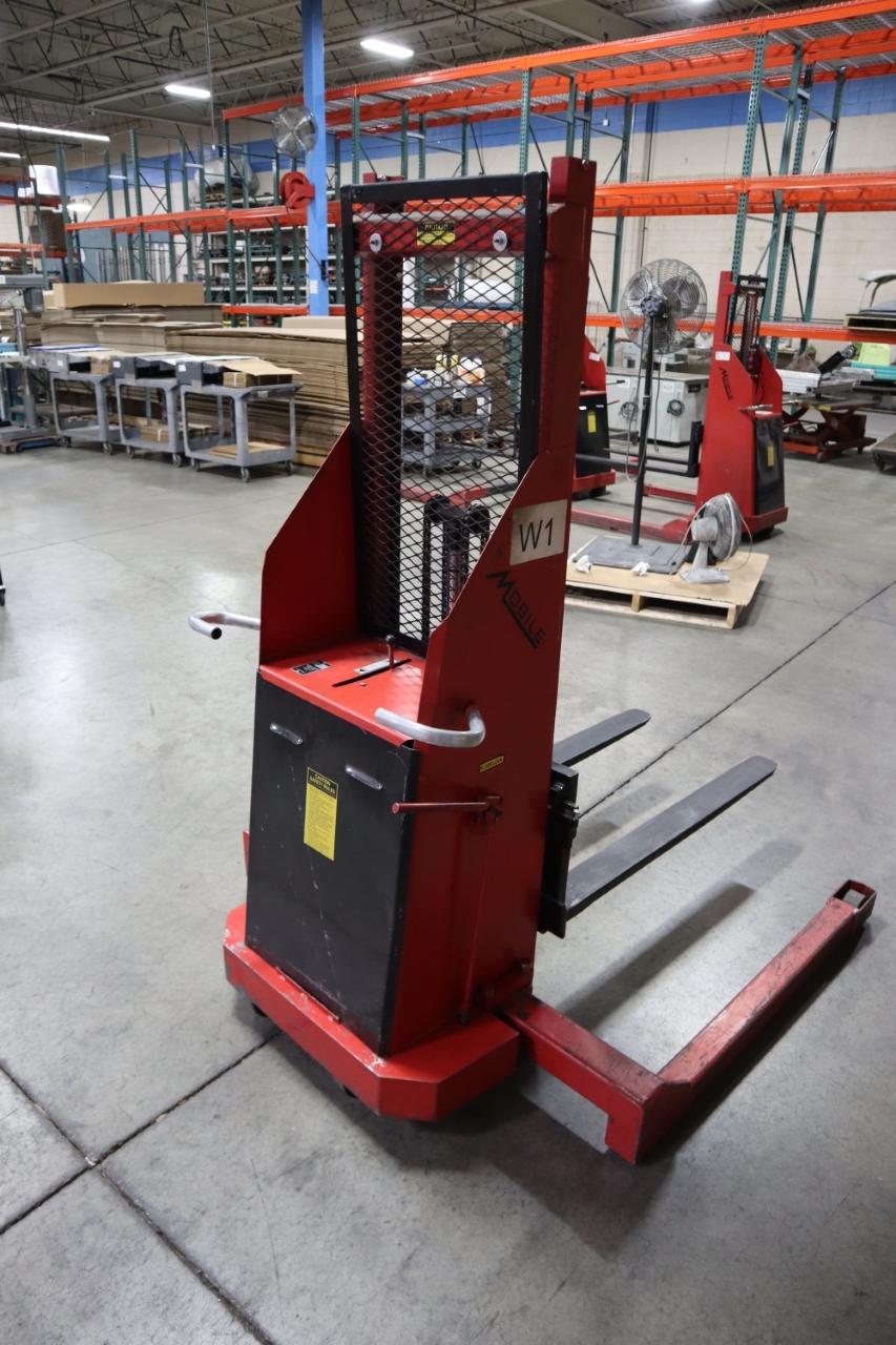 Lot 410: Mobile Pallet Truck B60-CSA Electric Stacker Lift Truck, 1,500 # Cap, 42" Forks, 60" Max Height, 12 Volt Battery, Charger
