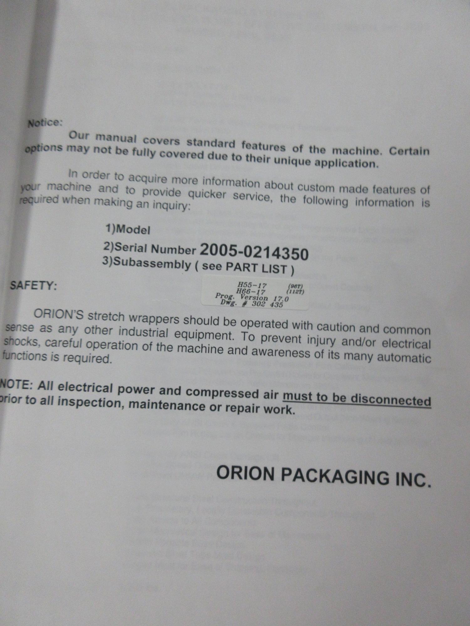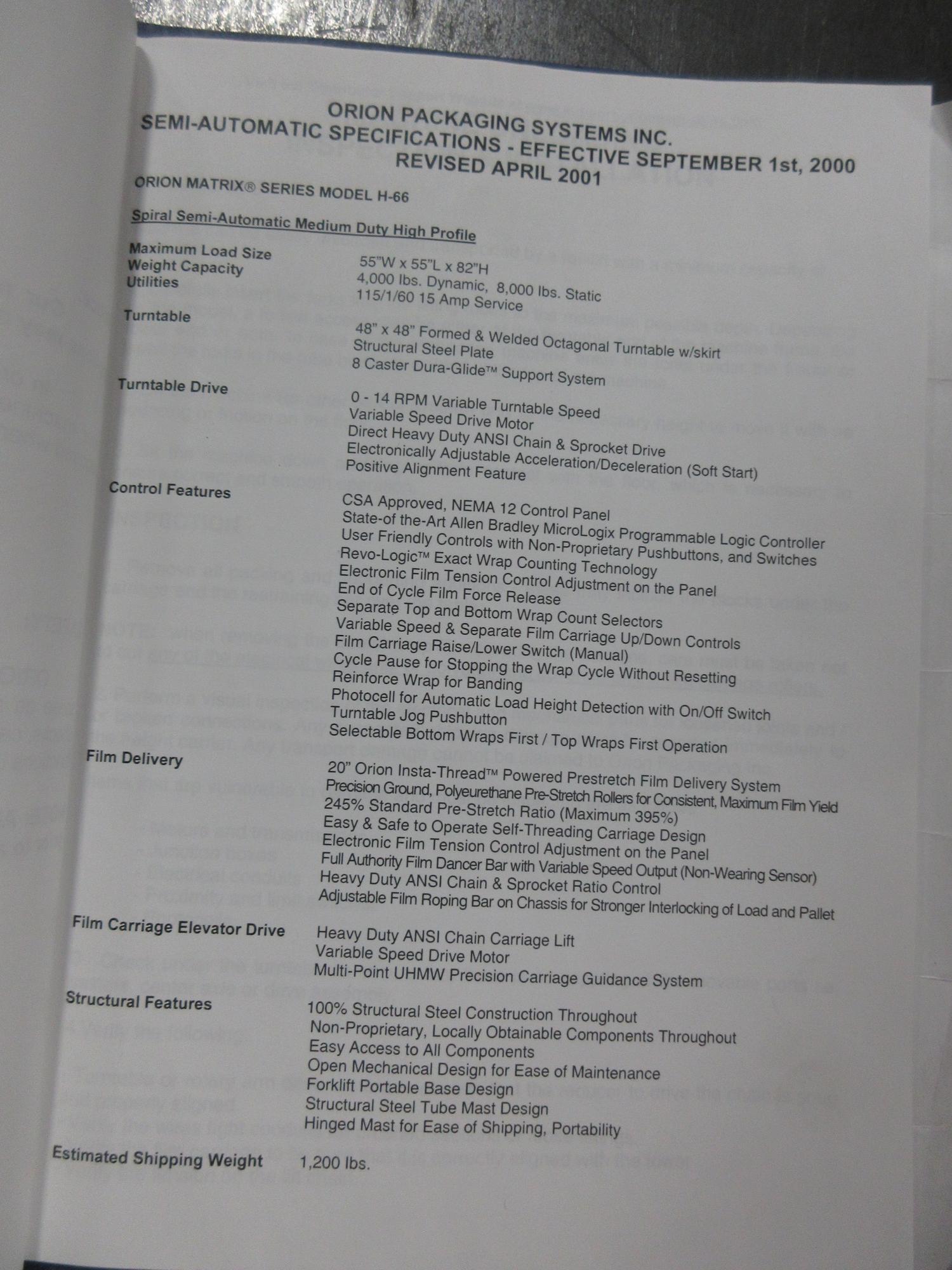 Lot 545: Orion Packaging Inc. Semi Automatic Shrink Wrapper and Pallet Scale, Max Load 55"x55"x82" 4000lbs Dynamic, 8000lb Static Capacity